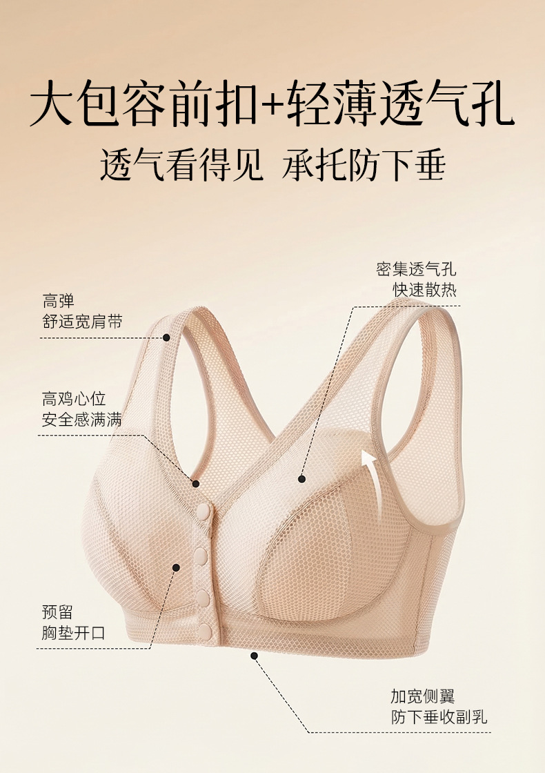 A급 여름용 얇은 엄마 속옷, 대형 사이즈, 통기성 메쉬, 버블 원단, 중노년 여성 브라, 앞후크 노인용 조끼스토어 가기