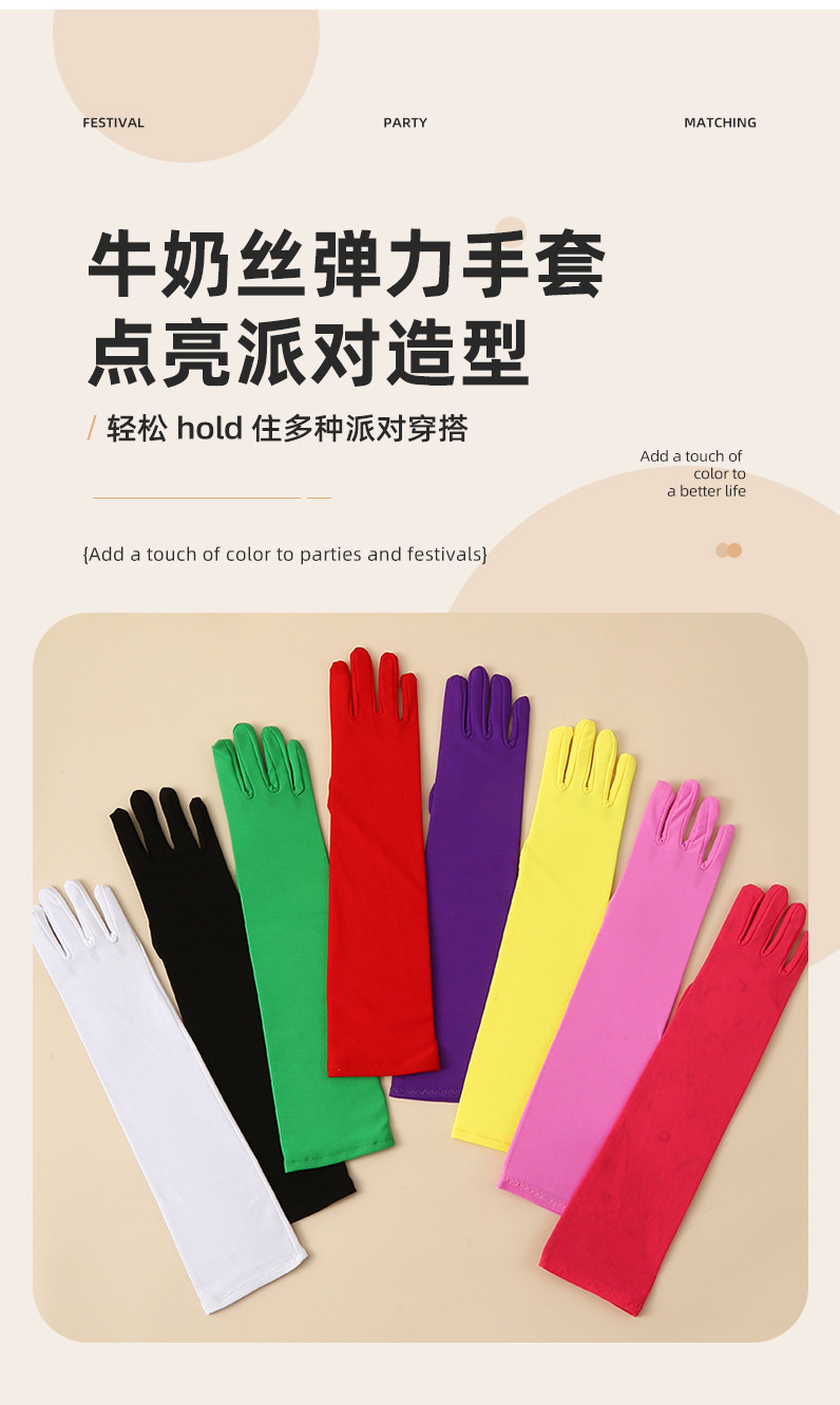 아마존 53cm 밀크 실크 신축성 파티 휴일 장갑 액세서리 공연 의상 블랙 롱 장갑