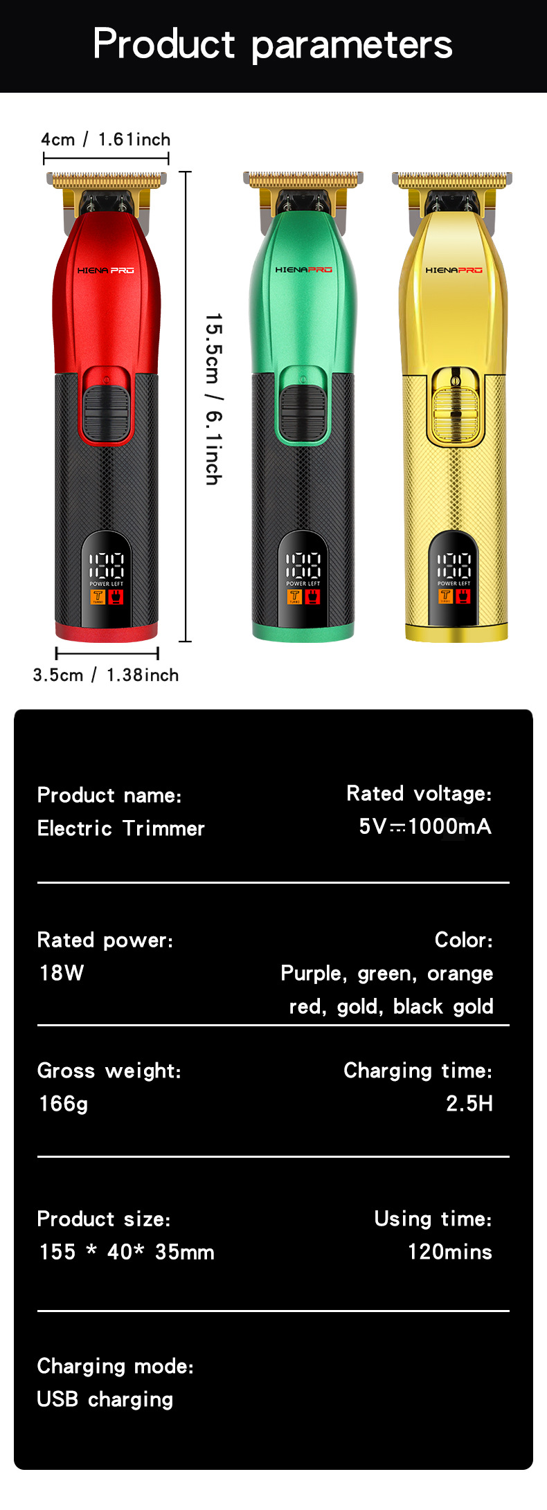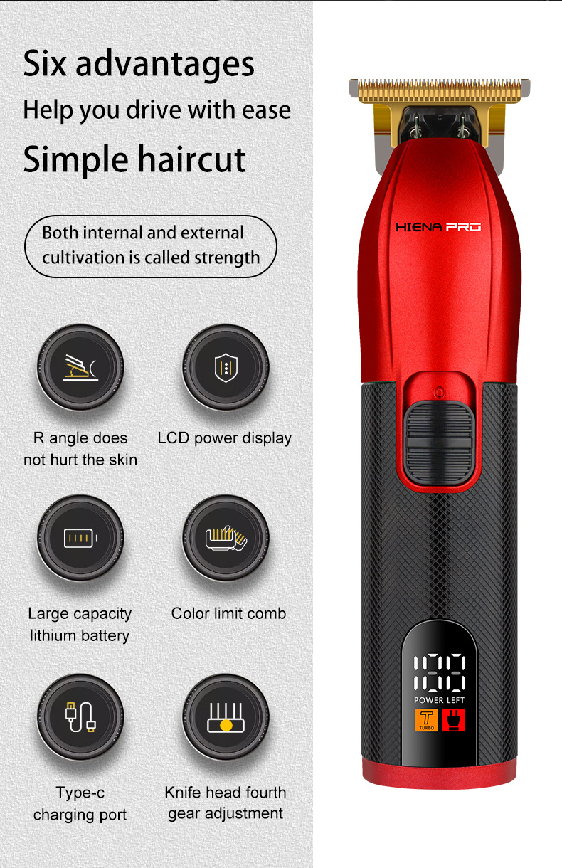 HIENA 다채로운 바디 디지털 디스플레이 전기 LCD 헤어 클리퍼 디지털 디스플레이 전기 클리퍼 전문 조각 기계 전용 국경스토어 가기