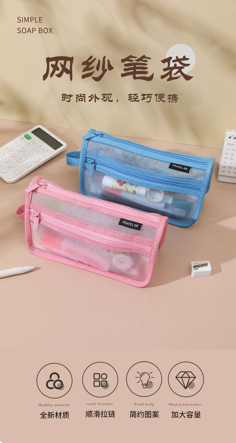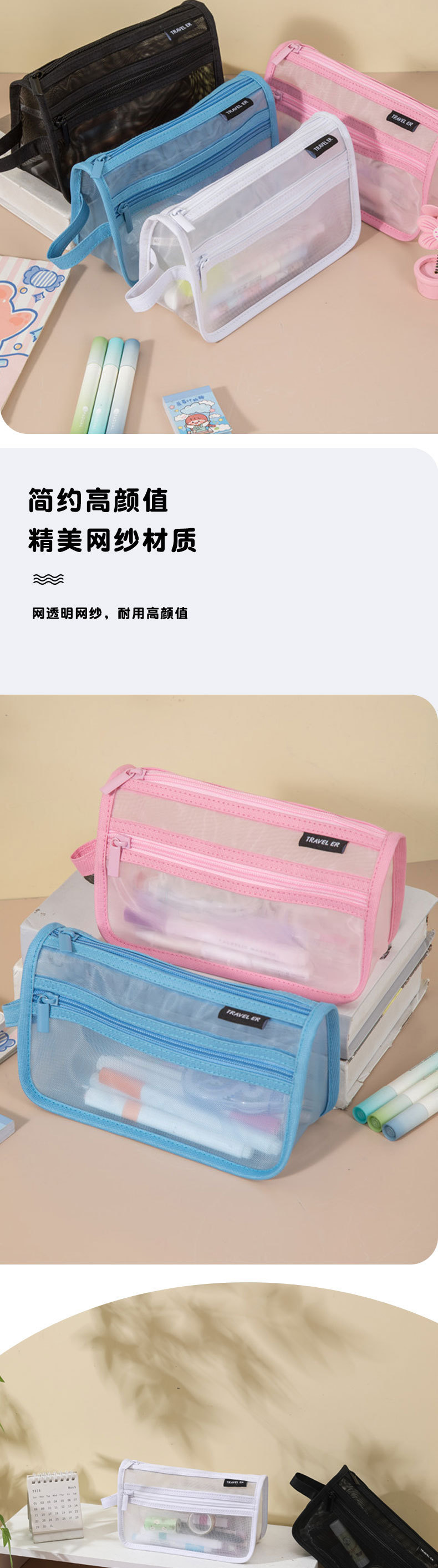 나일론 투명 메쉬 연필 가방 높은 색상 가치 학생 문구 보관 가방 스테레오 대용량 문구 상자 제조 업체스토어 가기