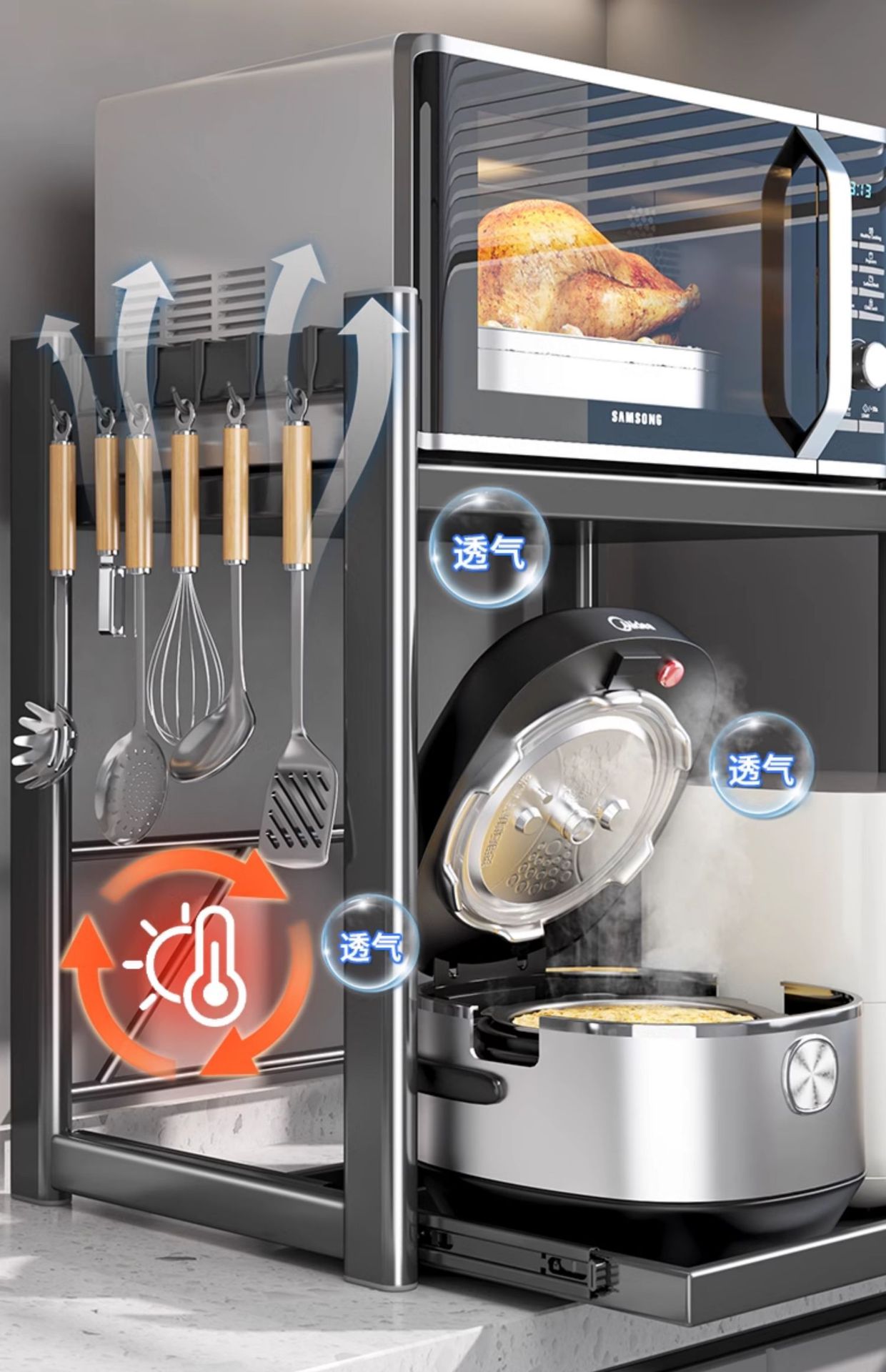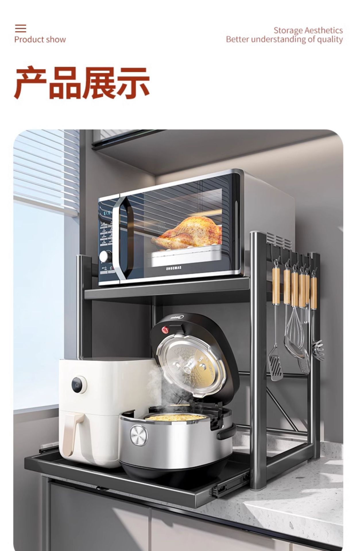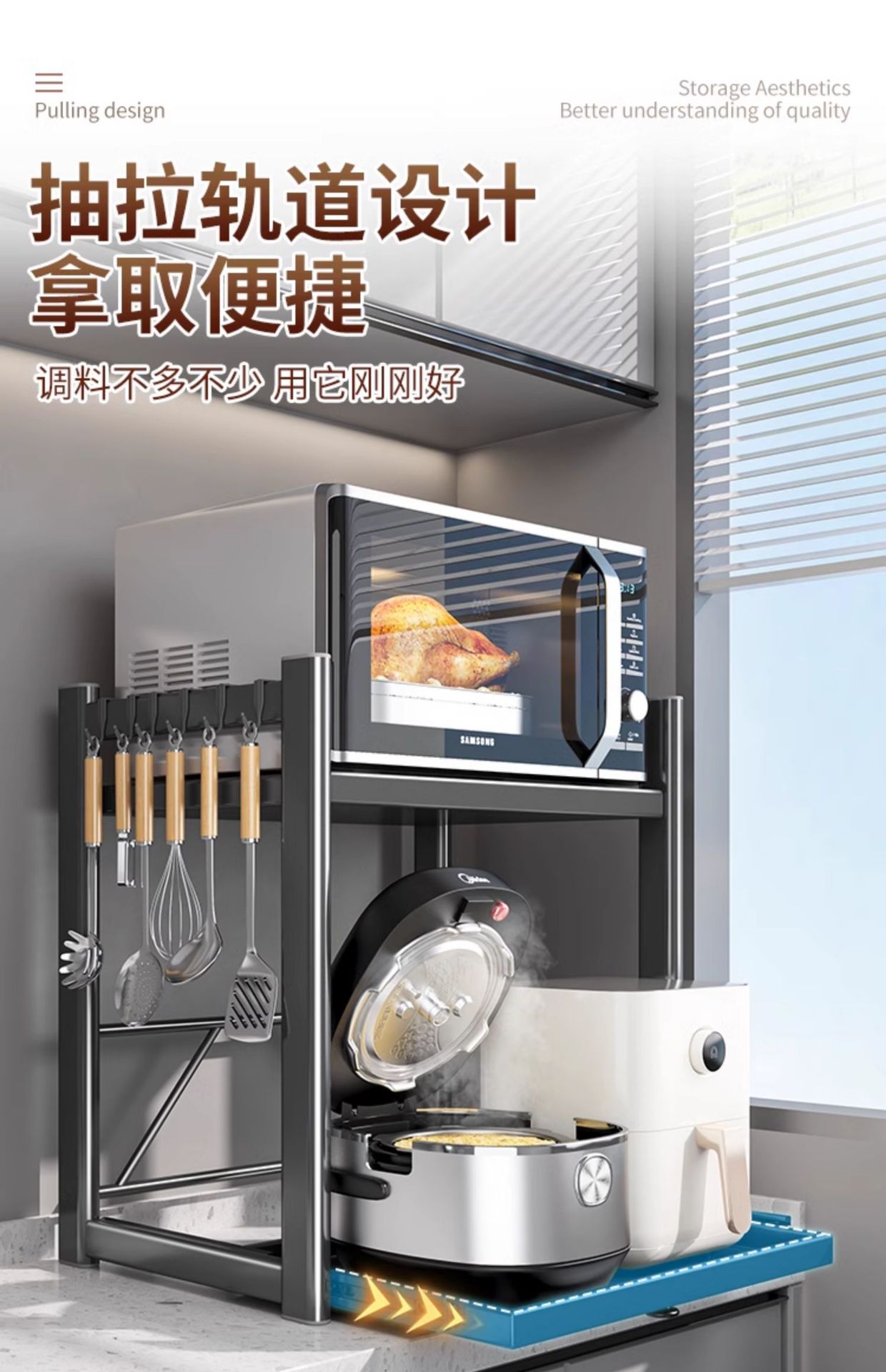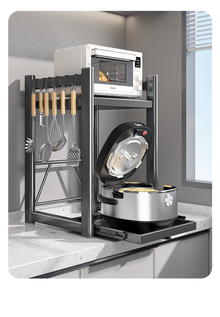 주방 전자 레인지 저장 랙 카운터 탑 서랍 풀 아웃 쌀밥솥 오븐 에어 프라이어 통합 스토리지 랙