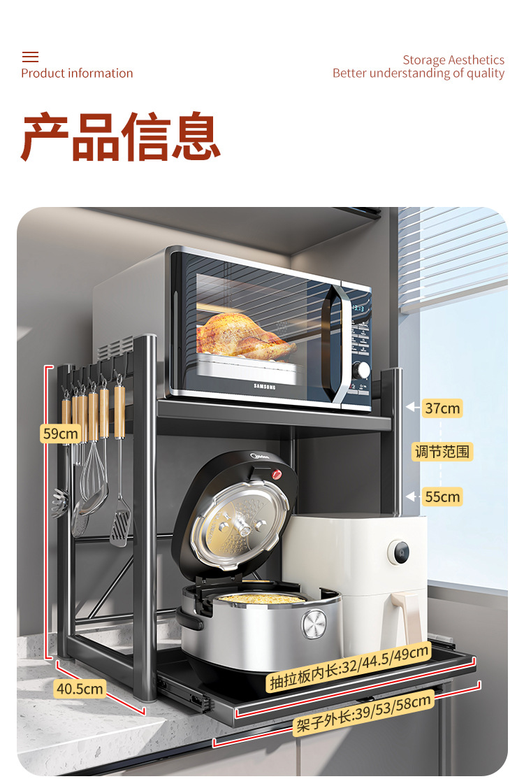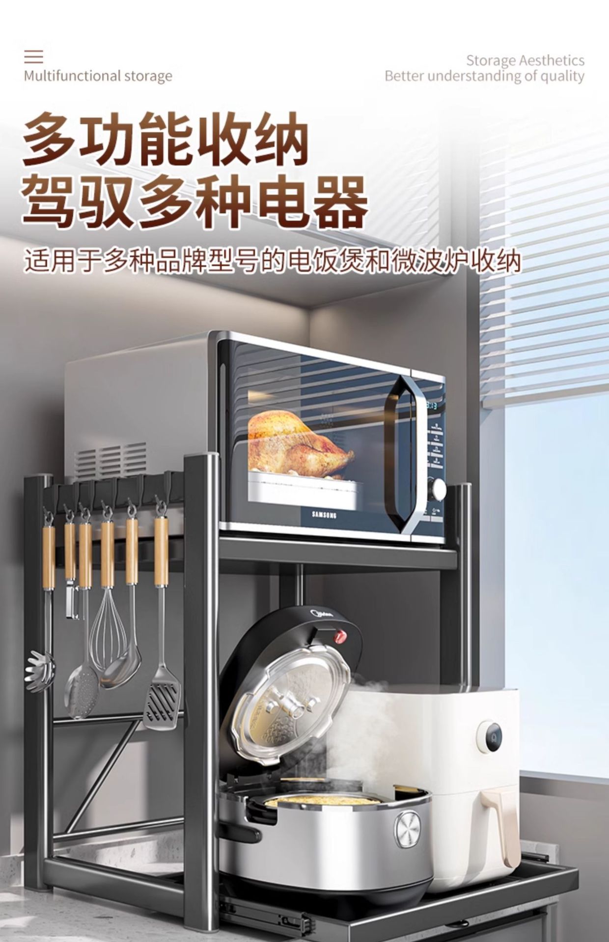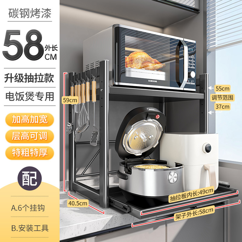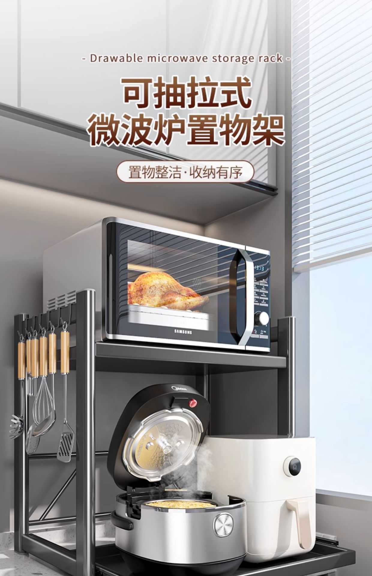 주방 전자 레인지 저장 랙 카운터 탑 서랍 풀 아웃 쌀밥솥 오븐 에어 프라이어 통합 스토리지 랙
