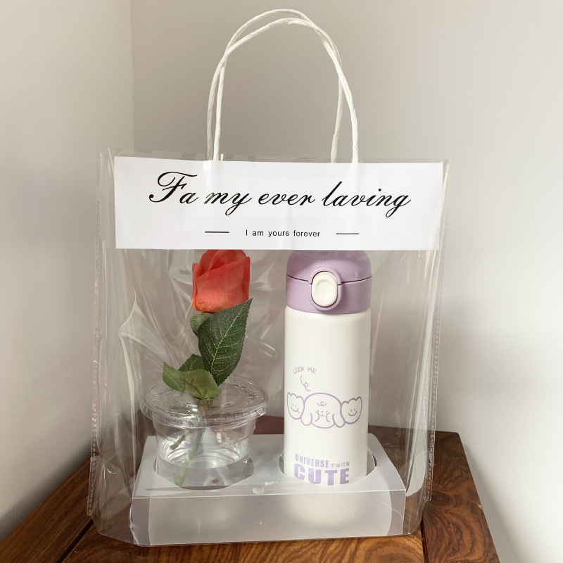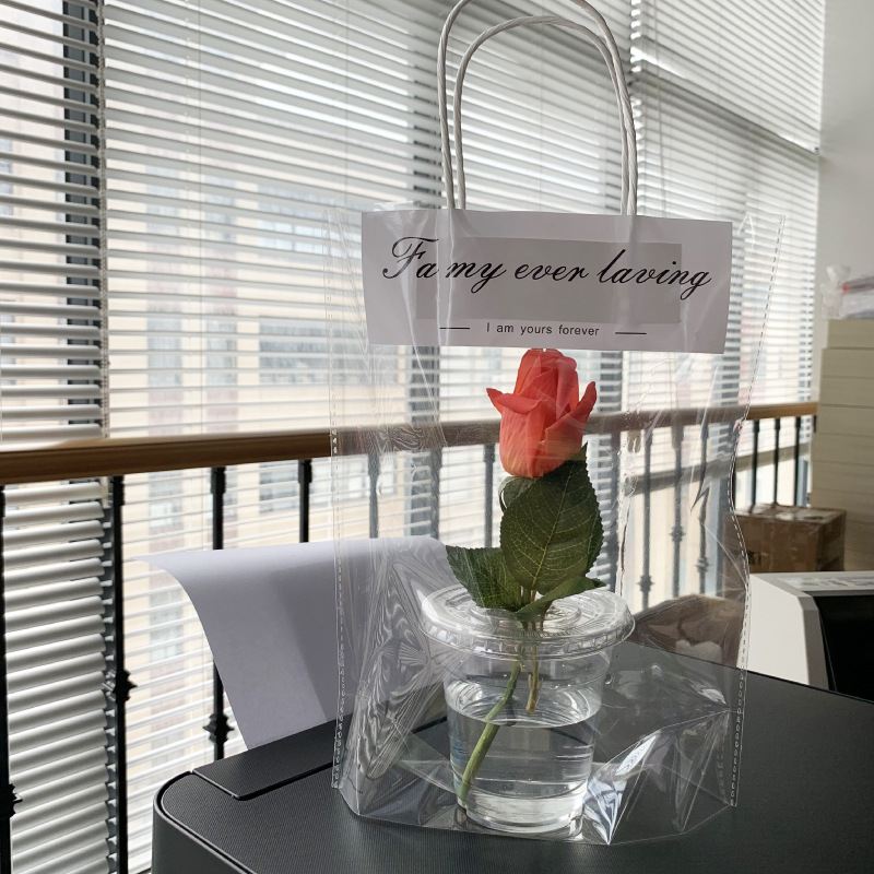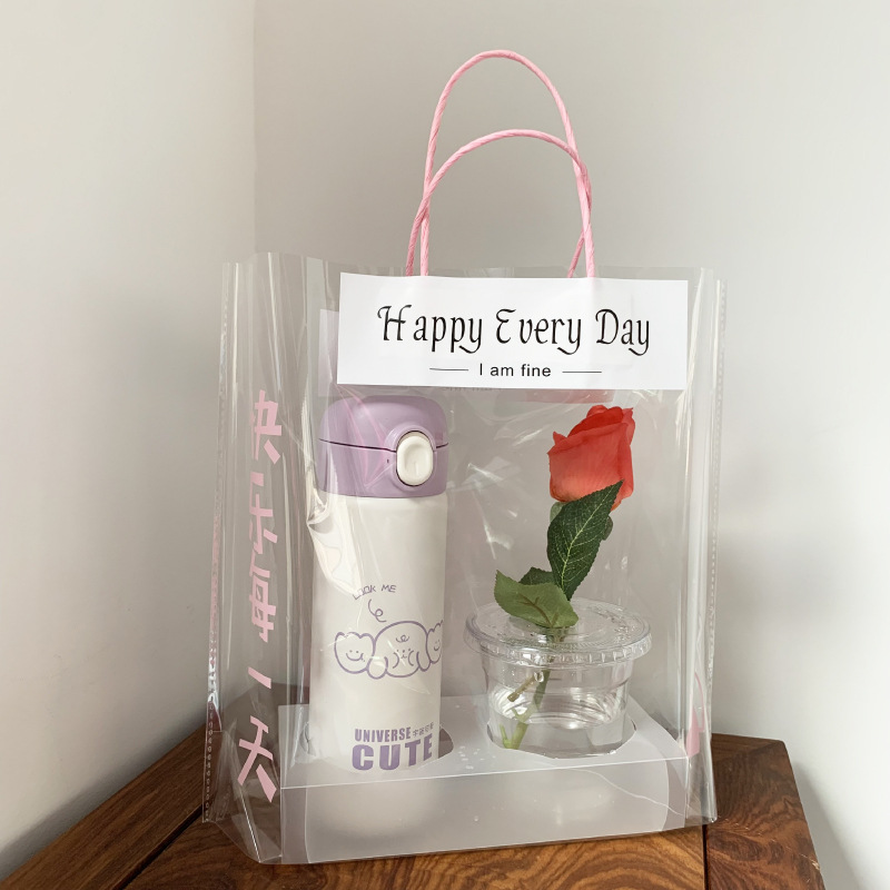 해피 매일 인터넷 유명 우유 차 포장 가방 테이크 아웃 투명 가방 어머니의 날 싱글 컵 더블 컵 핑크 핸드백