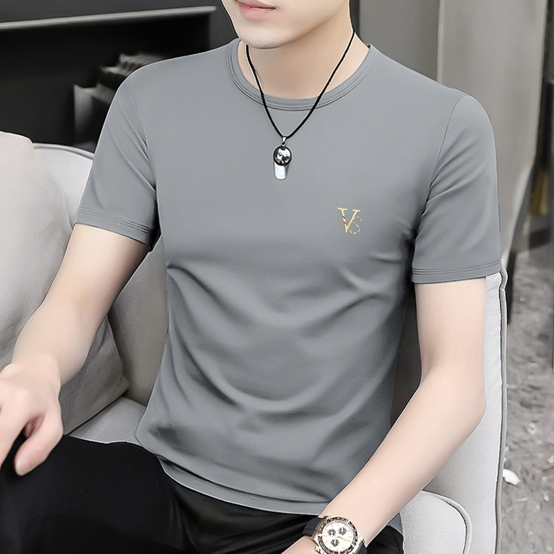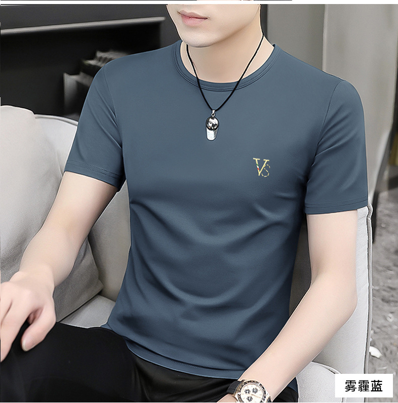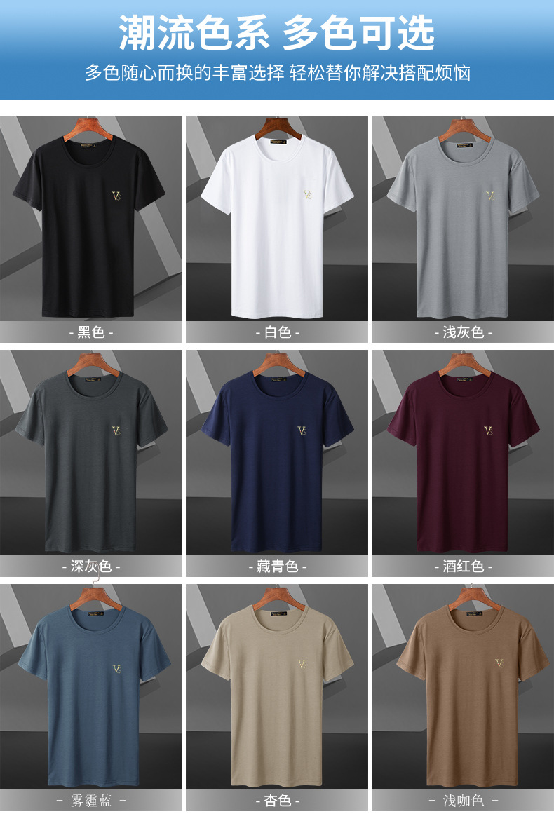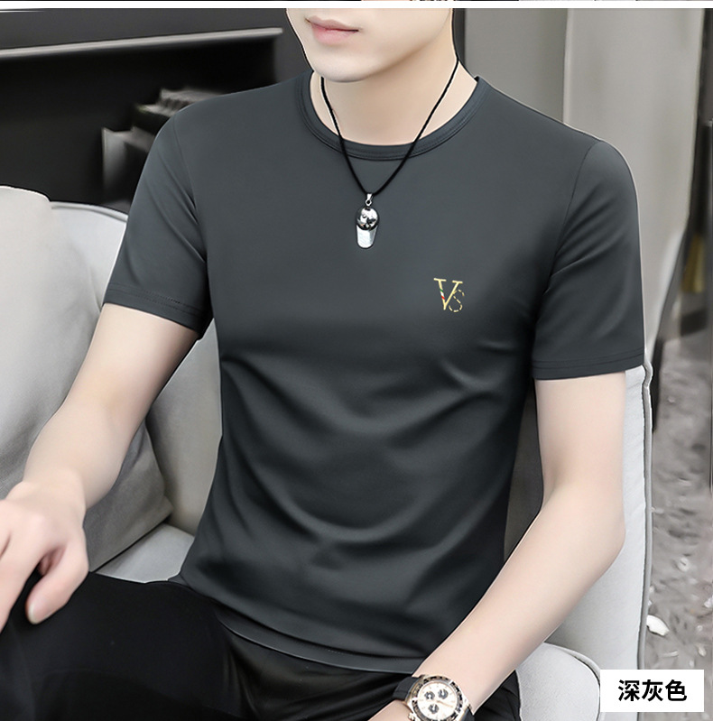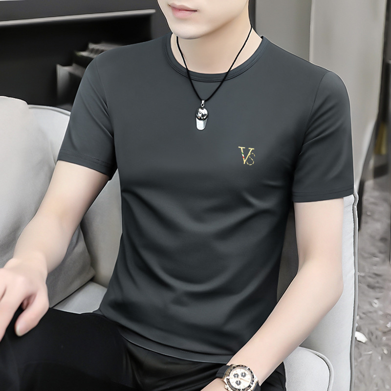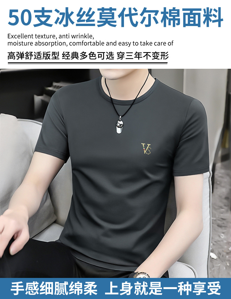 모달 블랙 남성 아이스 실크 반팔 티셔츠 여름 2025 새로운 라운드 넥 코튼 퓨어 아이스 티셔츠 남성 의류스토어 가기