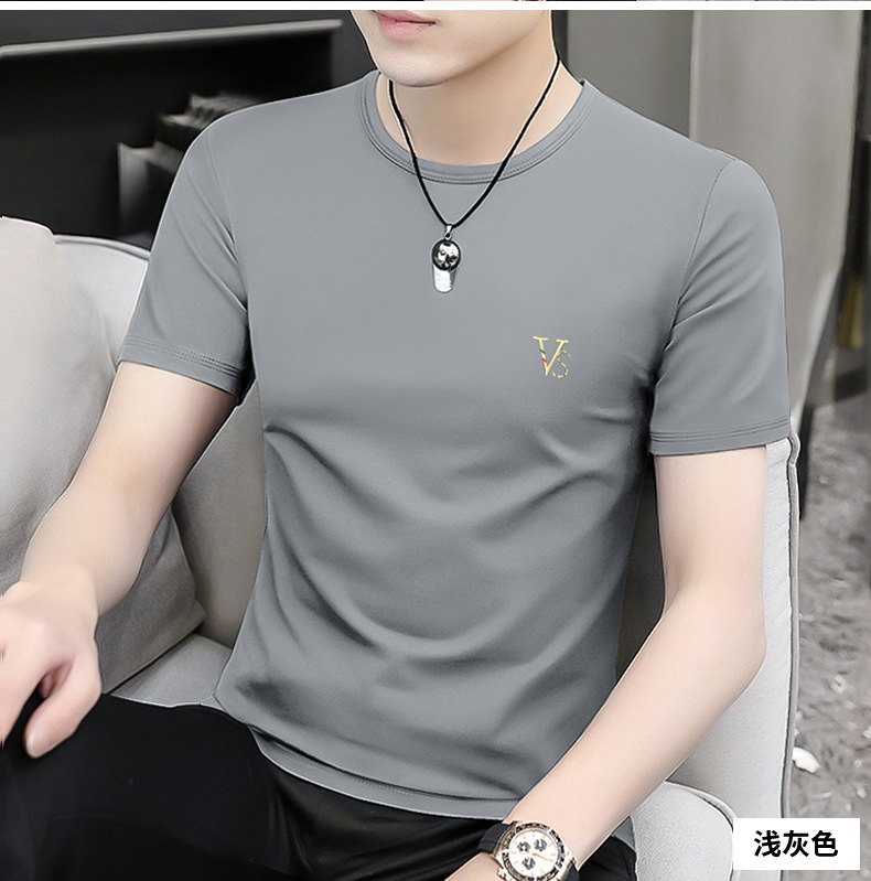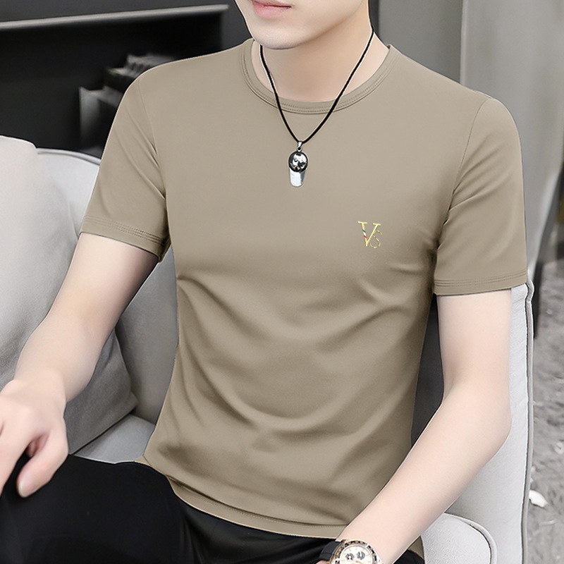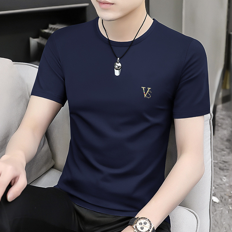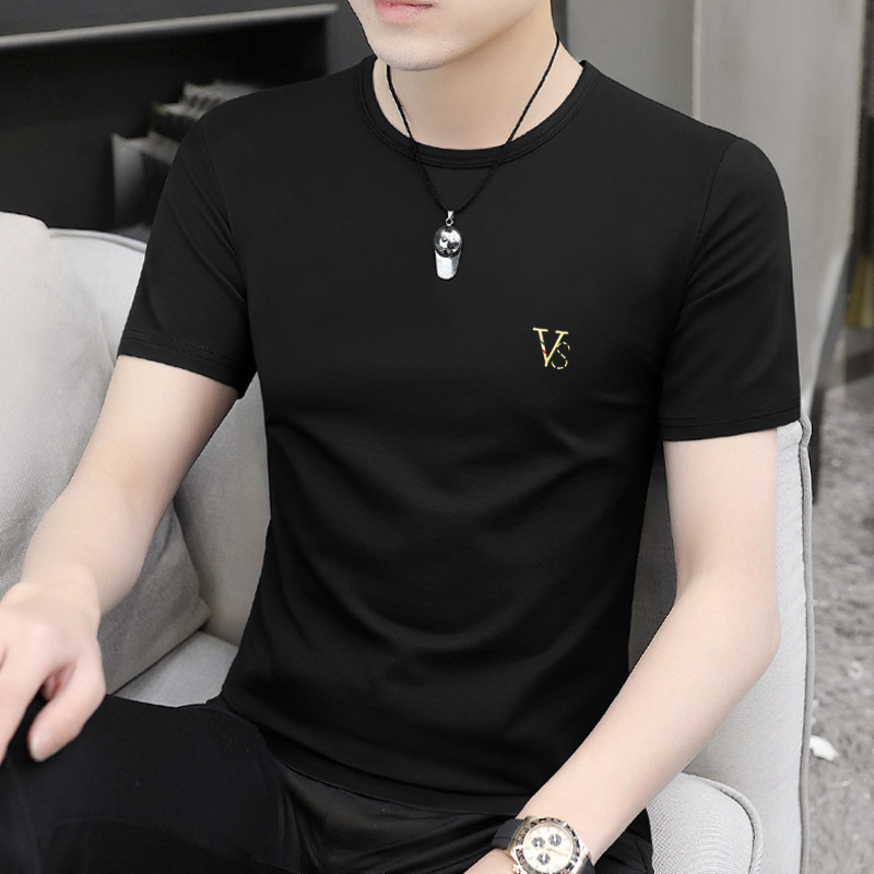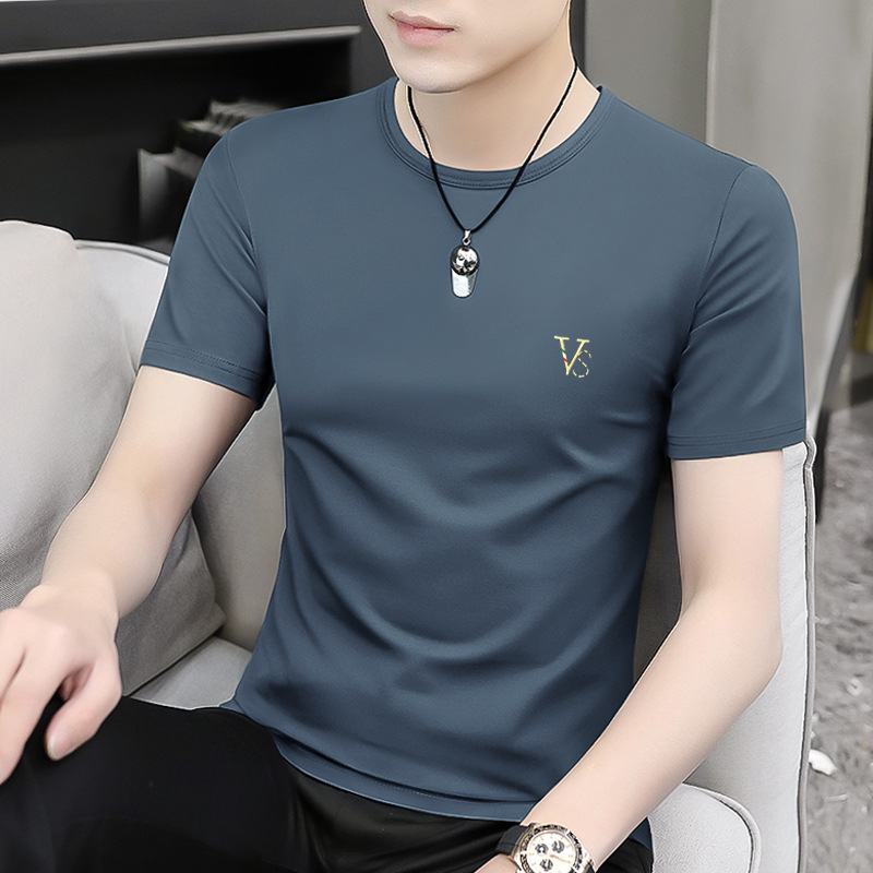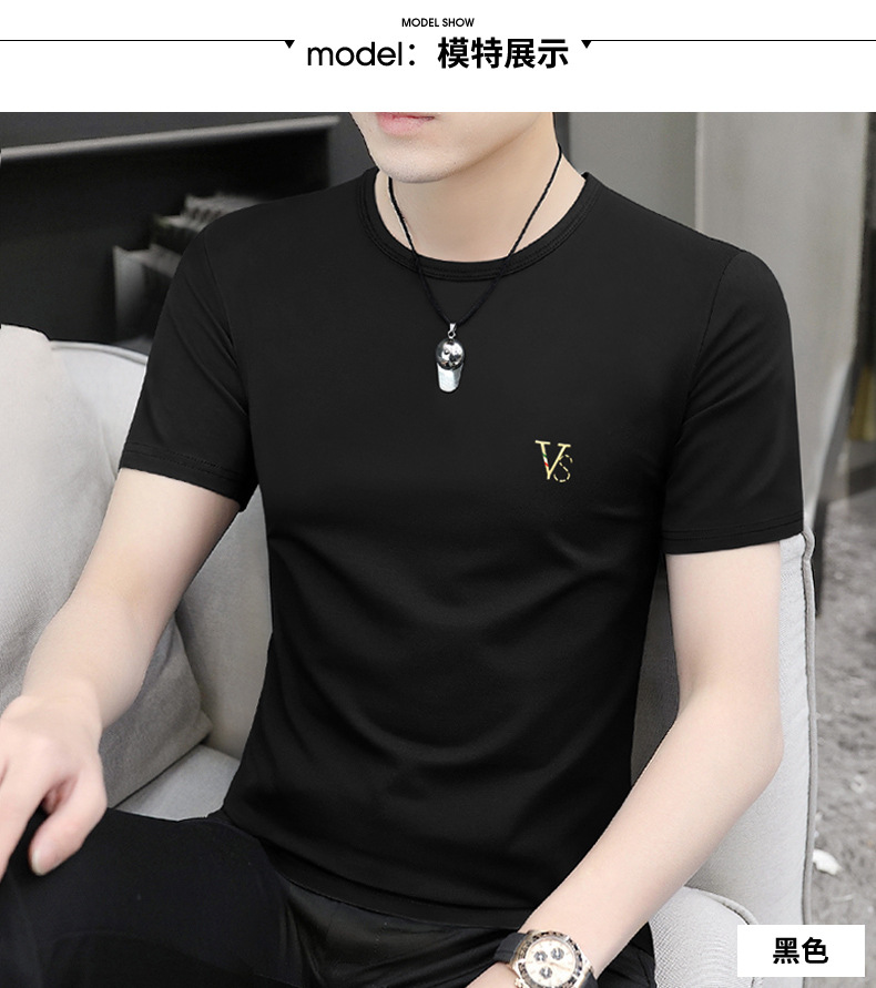 모달 블랙 남성 아이스 실크 반팔 티셔츠 여름 2025 새로운 라운드 넥 코튼 퓨어 아이스 티셔츠 남성 의류스토어 가기
