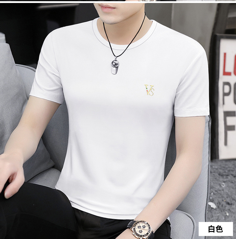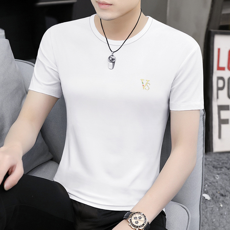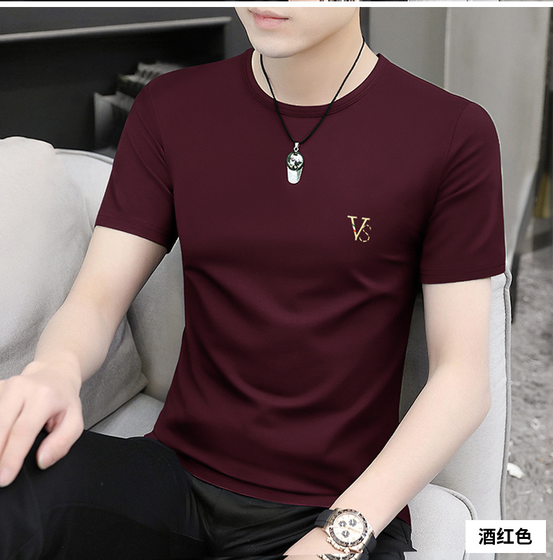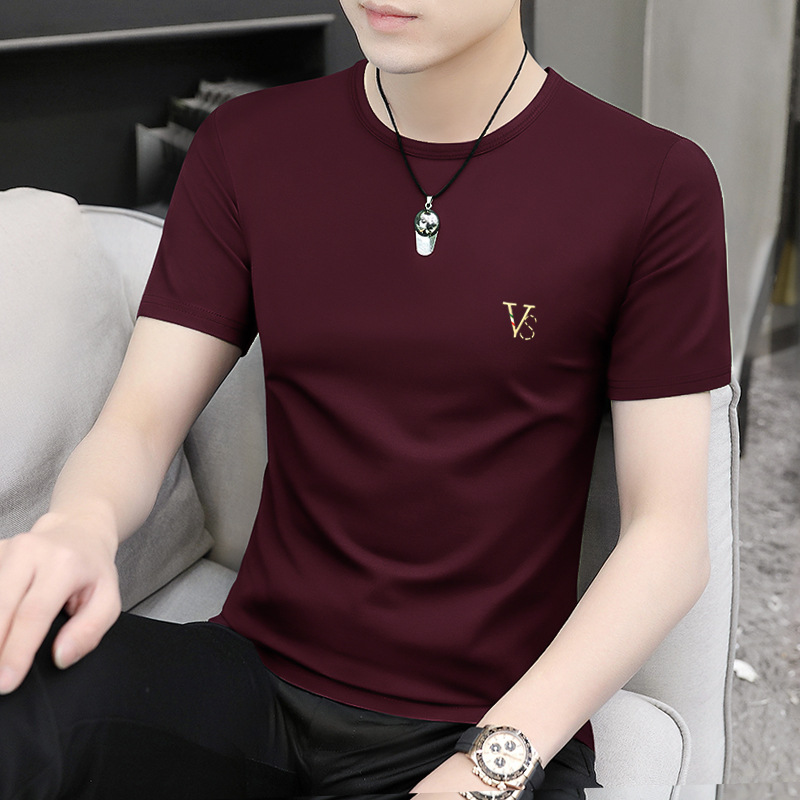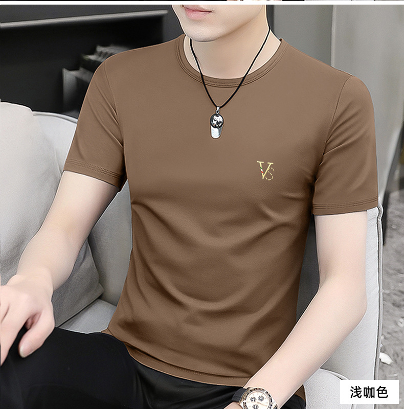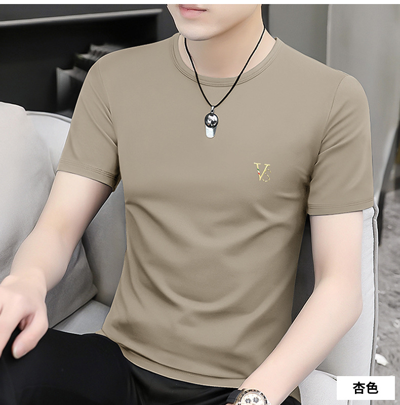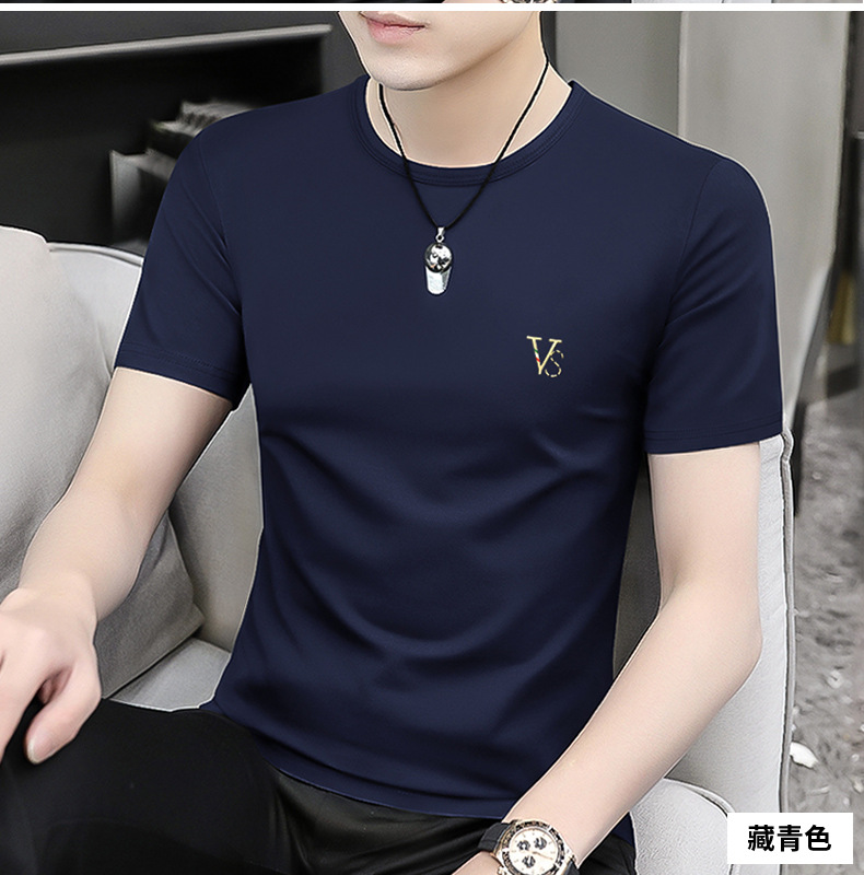 모달 블랙 남성 아이스 실크 반팔 티셔츠 여름 2025 새로운 라운드 넥 코튼 퓨어 아이스 티셔츠 남성 의류스토어 가기