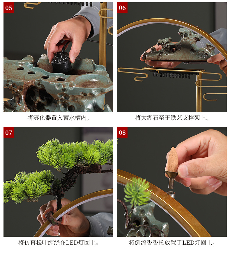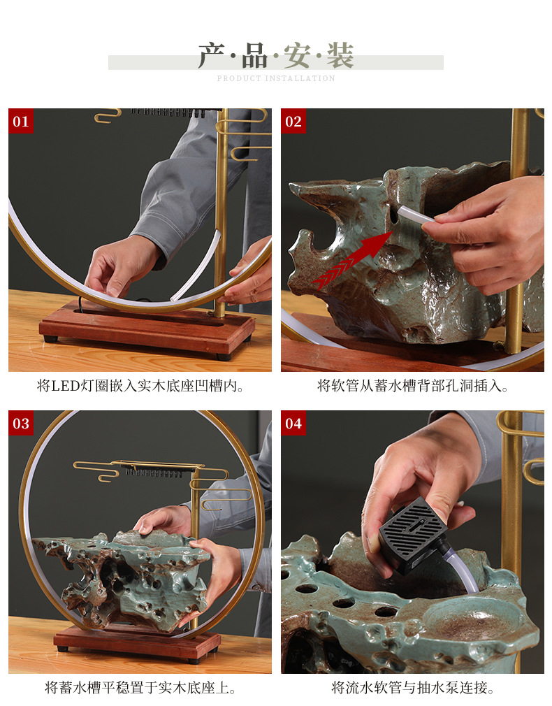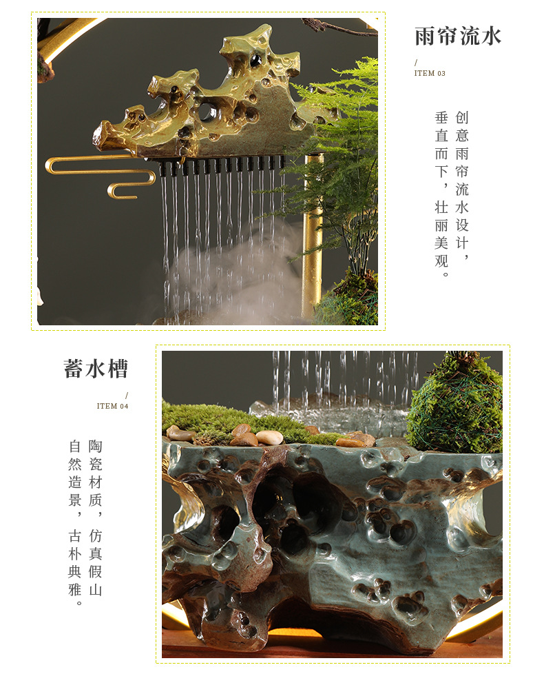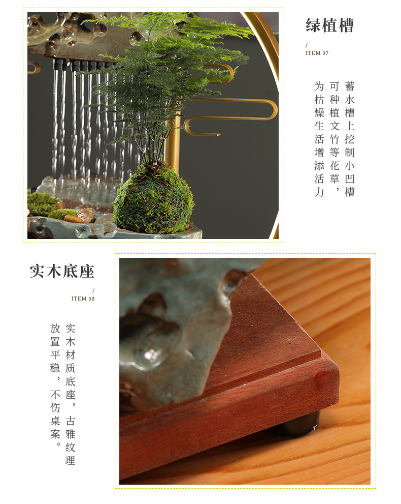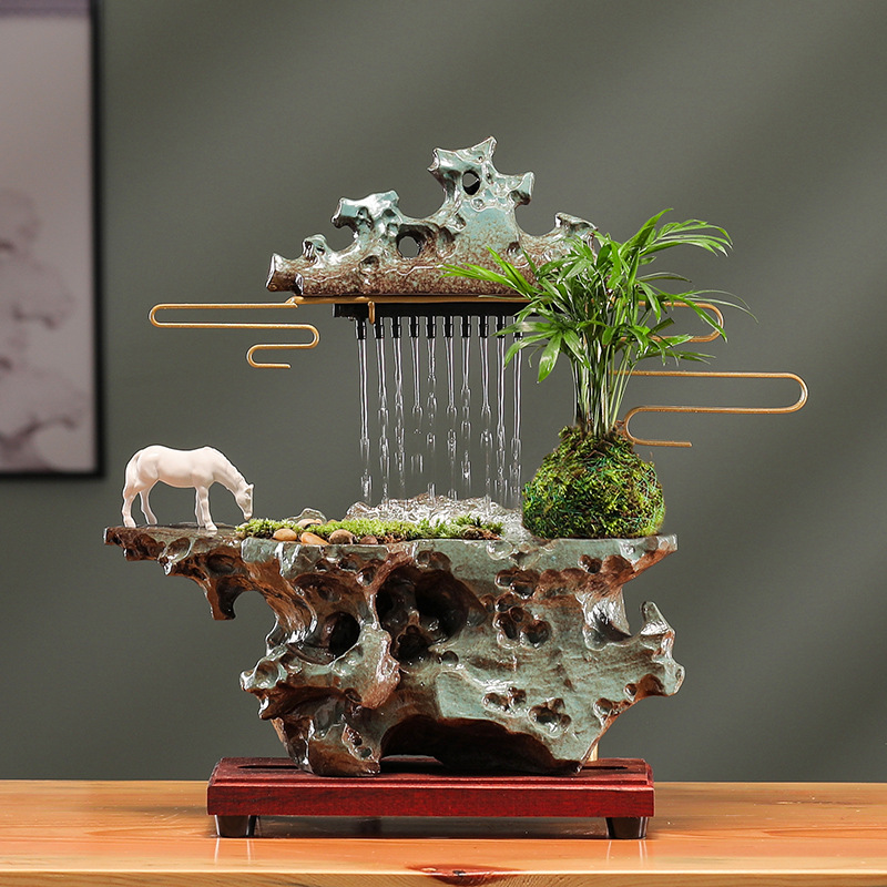 행운의 물 장식품 순환 물 풍경 장식 중국 거실 입구 사무실 데스크탑 집들이 오프닝 선물