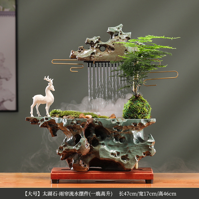 • [큰] 태후 돌-비 커튼 흐르는 물 장식품 (1 사슴 높은 상승) 분무화 아스파라거스