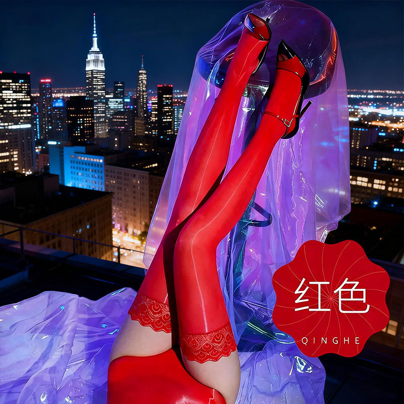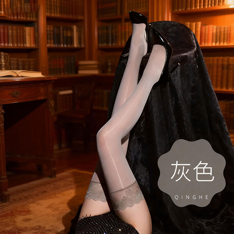 말 오일 스타킹 무릎 양말 위에 공작 레이스 얇은 섹시한 오일 광택 스타킹 실리콘 미끄럼 방지 하이 양말스토어 가기