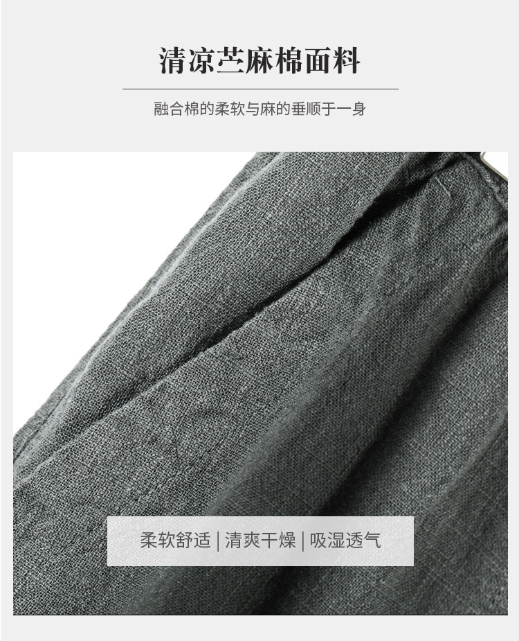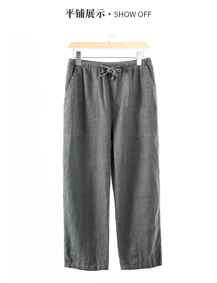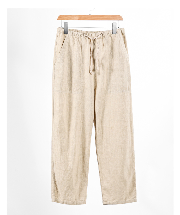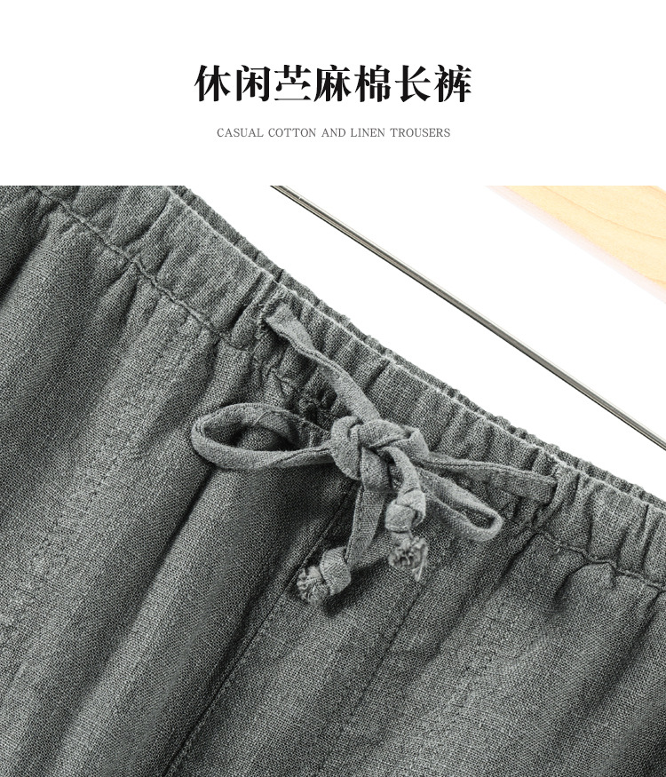 2026 봄/여름 남성용 모시 긴바지, 단색, 얇고 통기성 좋은 중국풍 면마 스트레이트 캐주얼 팬츠, 신상-샤이빙스토어 가기