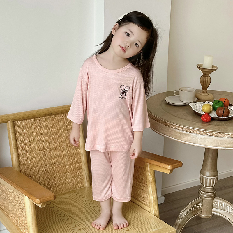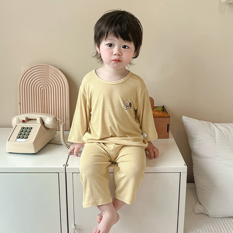 요신 뼈없는 어린이 7 점 슬리브 홈 세트 중 · 대형 어린이 소년 소녀 얇은 파자마 여름 에어컨 세트