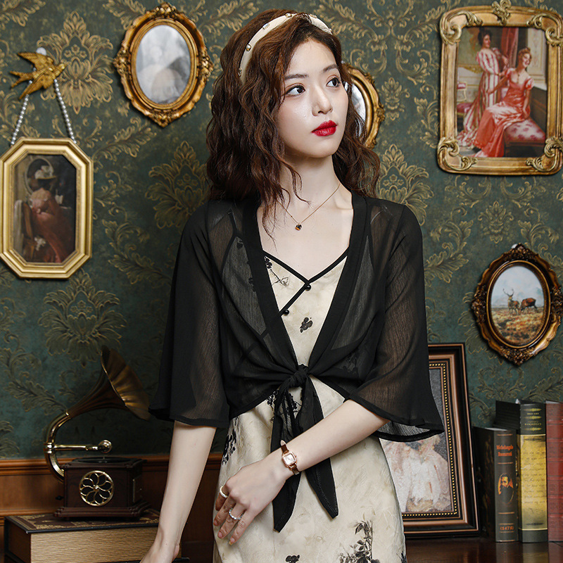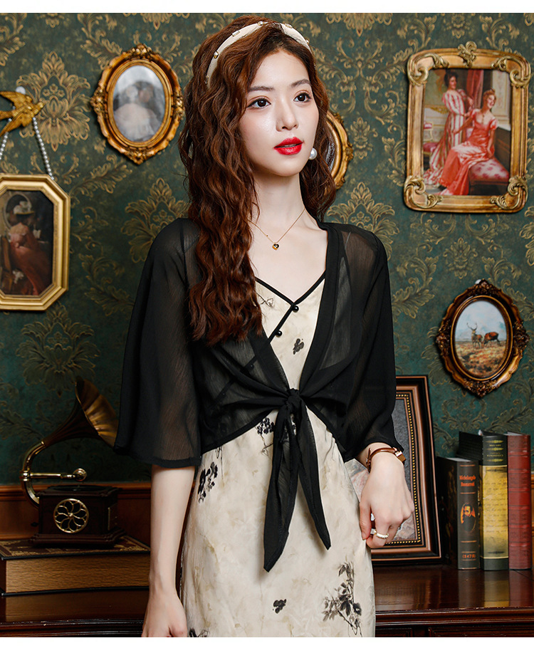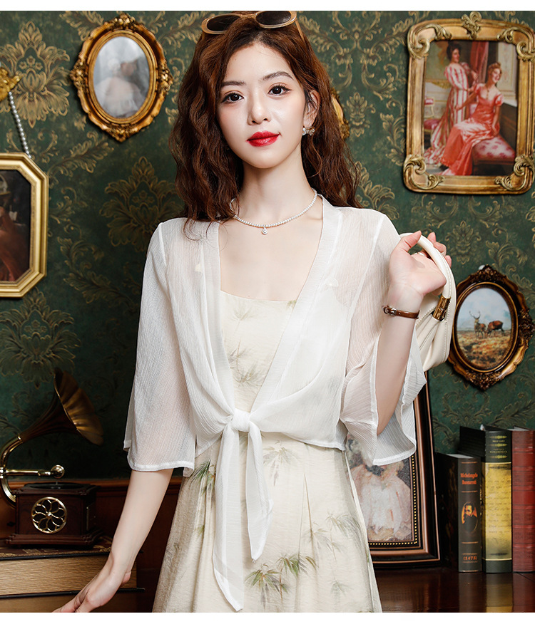 시폰 태양 보호 의류 여성 여름 새로운 다목적 작은 목도리 카디건 탑과 얇은 에어컨 셔츠스토어 가기