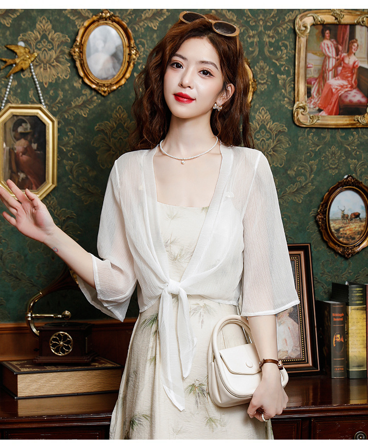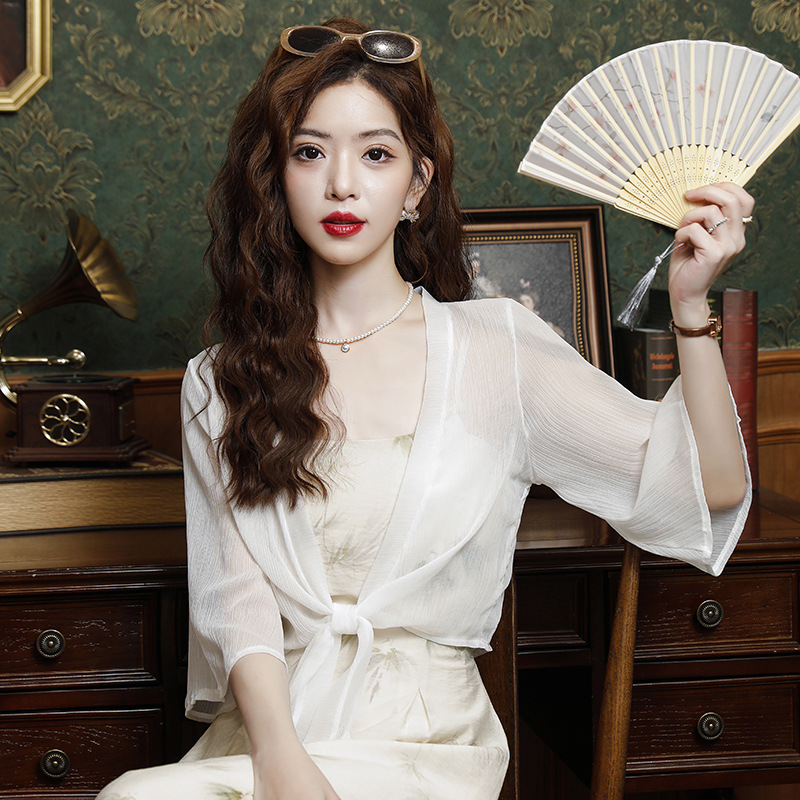시폰 태양 보호 의류 여성 여름 새로운 다목적 작은 목도리 카디건 탑과 얇은 에어컨 셔츠