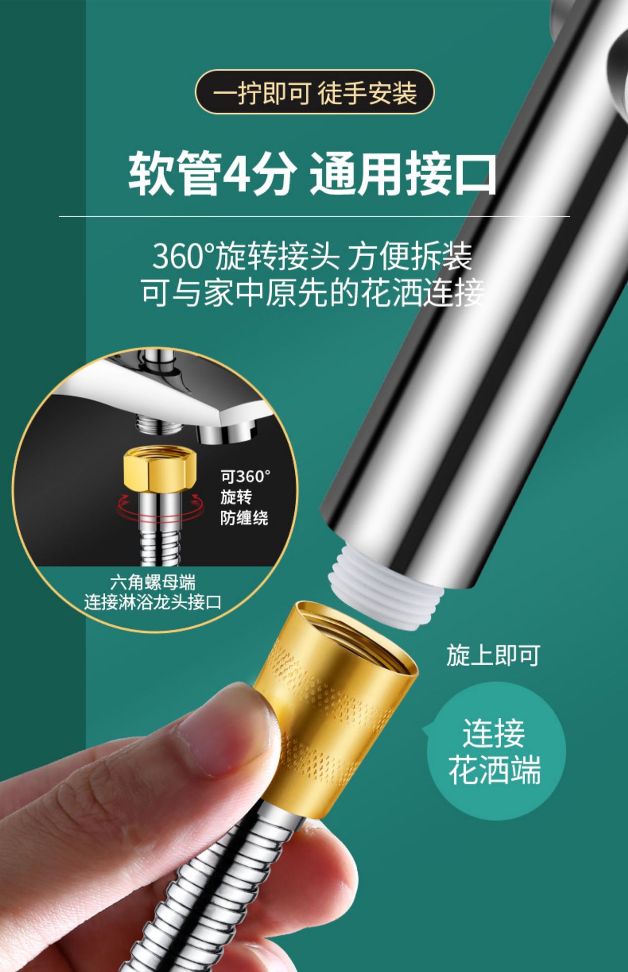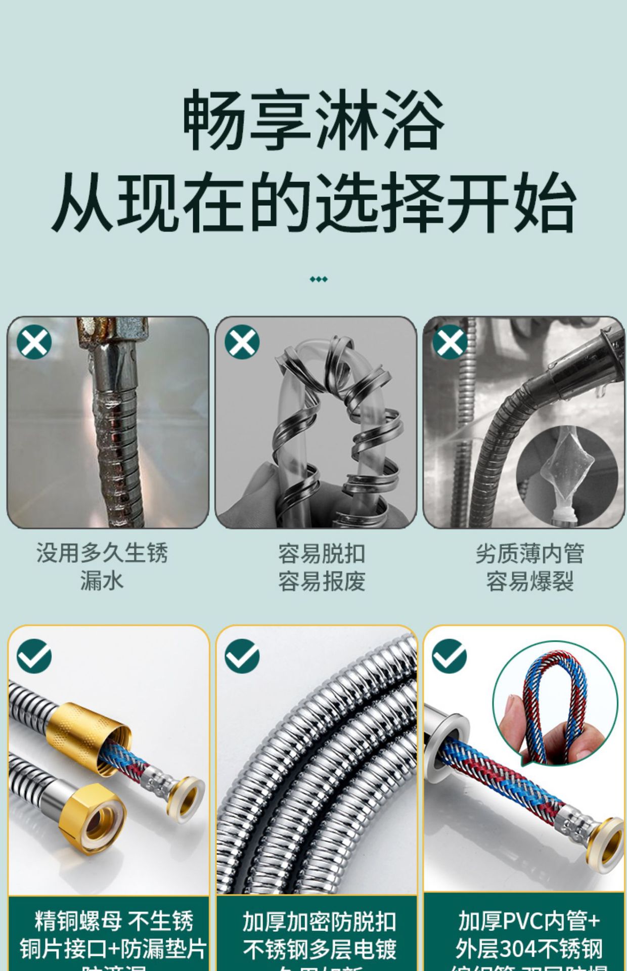 욕실 온수기 욕조 튜브 이음쇠 1.5/2 m 스테인리스 호스 암호화 비 샤워 호스