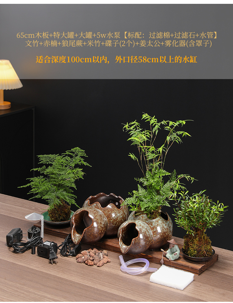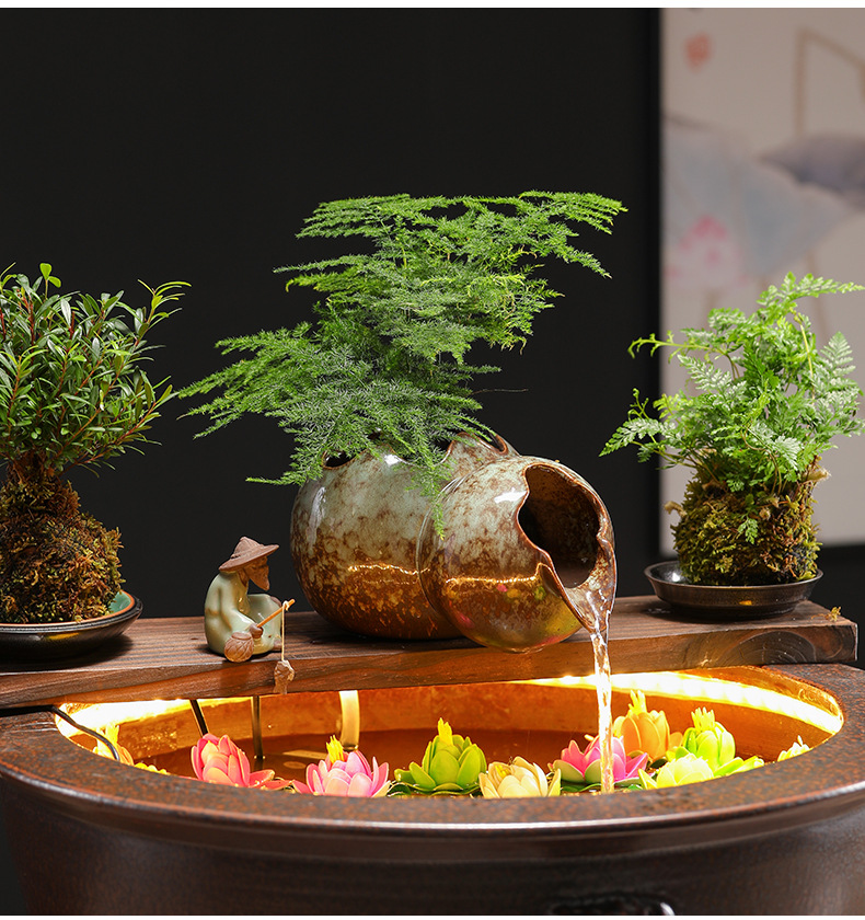 고대 방식의 어류 양식 수조 세트, 세라믹 탱크, 물 순환 여과, 산소 공급 생태 수조, 발코니 조경 어항 장식품