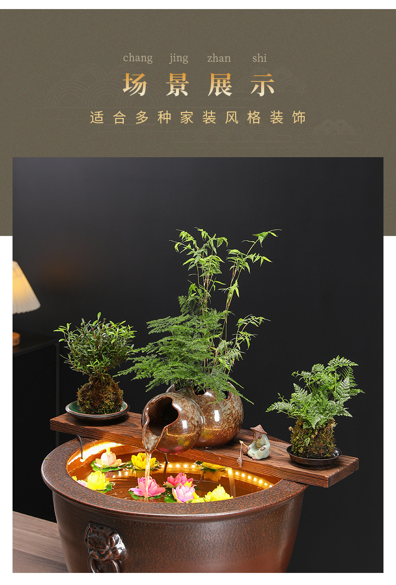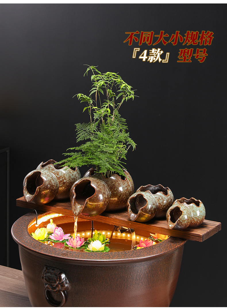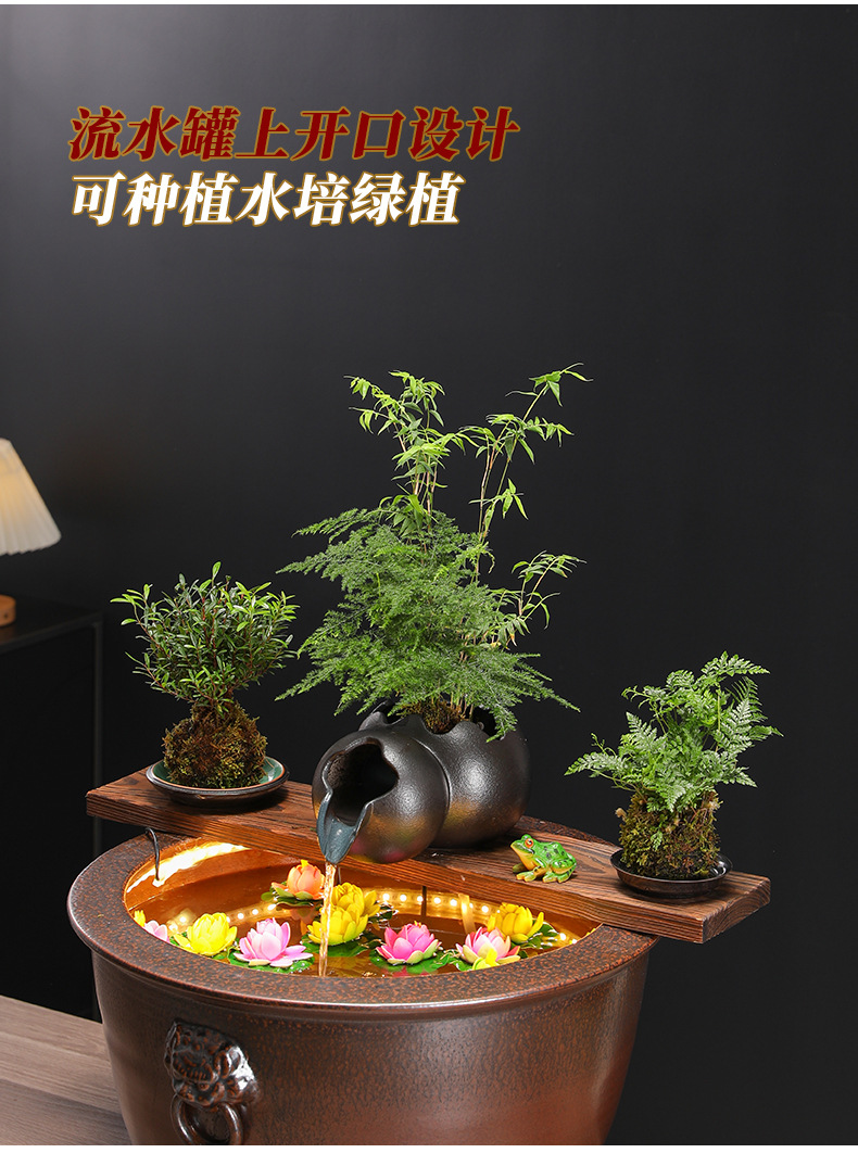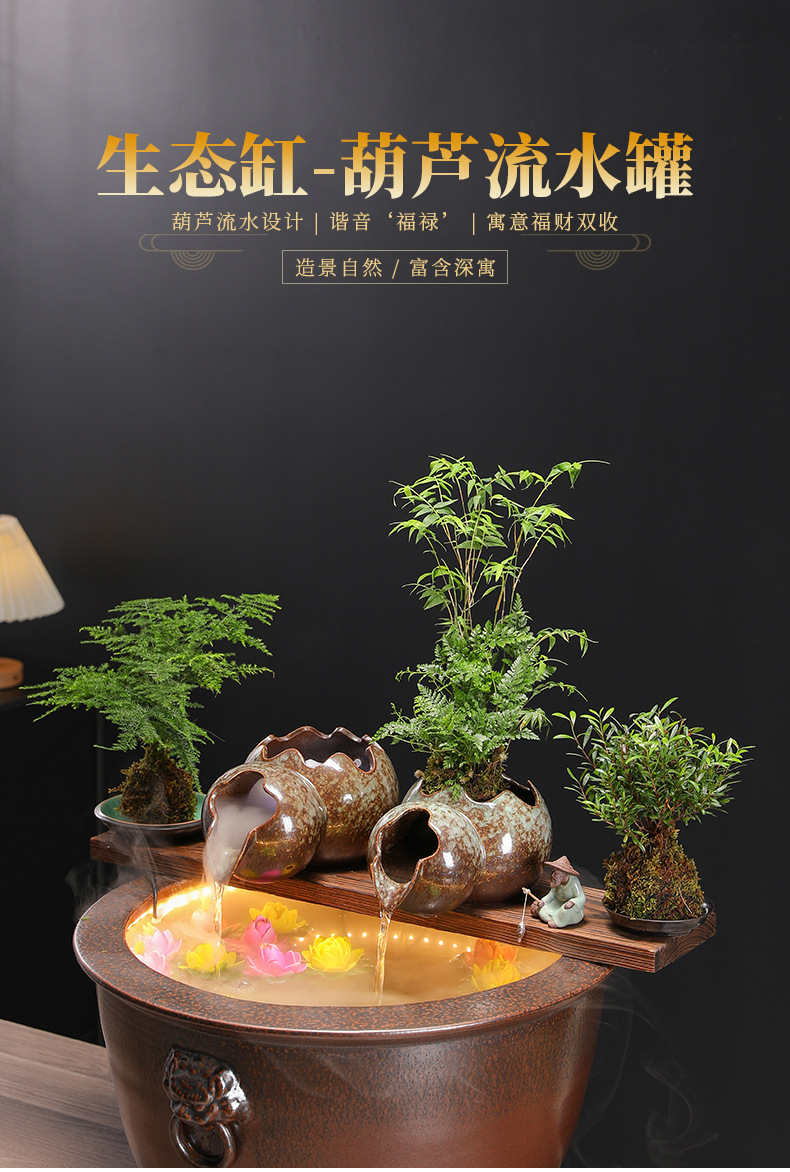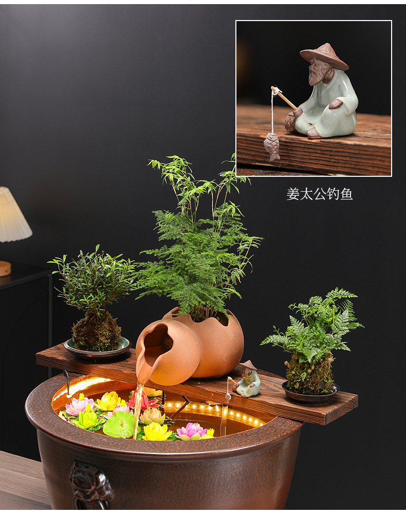 고대 방식의 어류 양식 수조 세트, 세라믹 탱크, 물 순환 여과, 산소 공급 생태 수조, 발코니 조경 어항 장식품스토어 가기