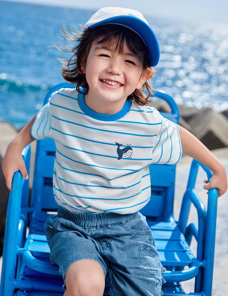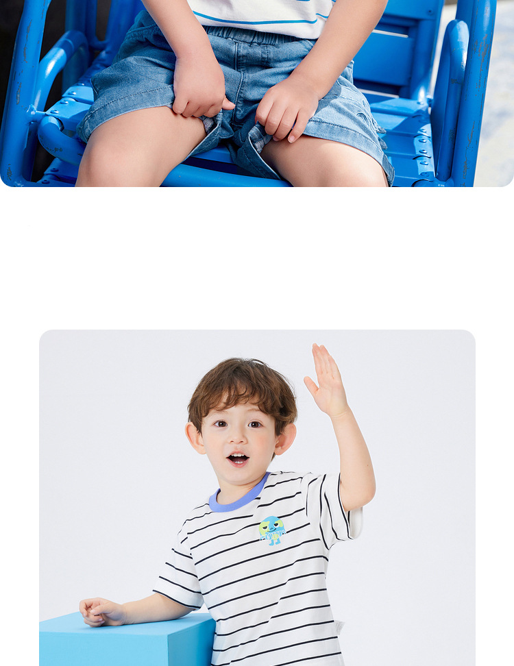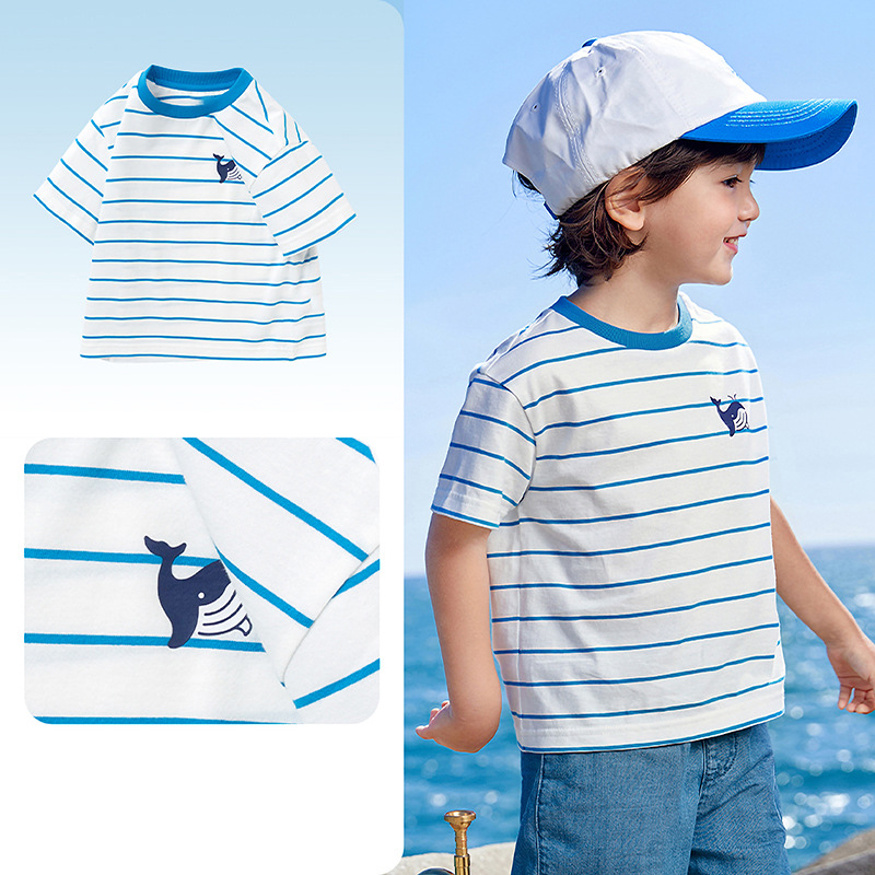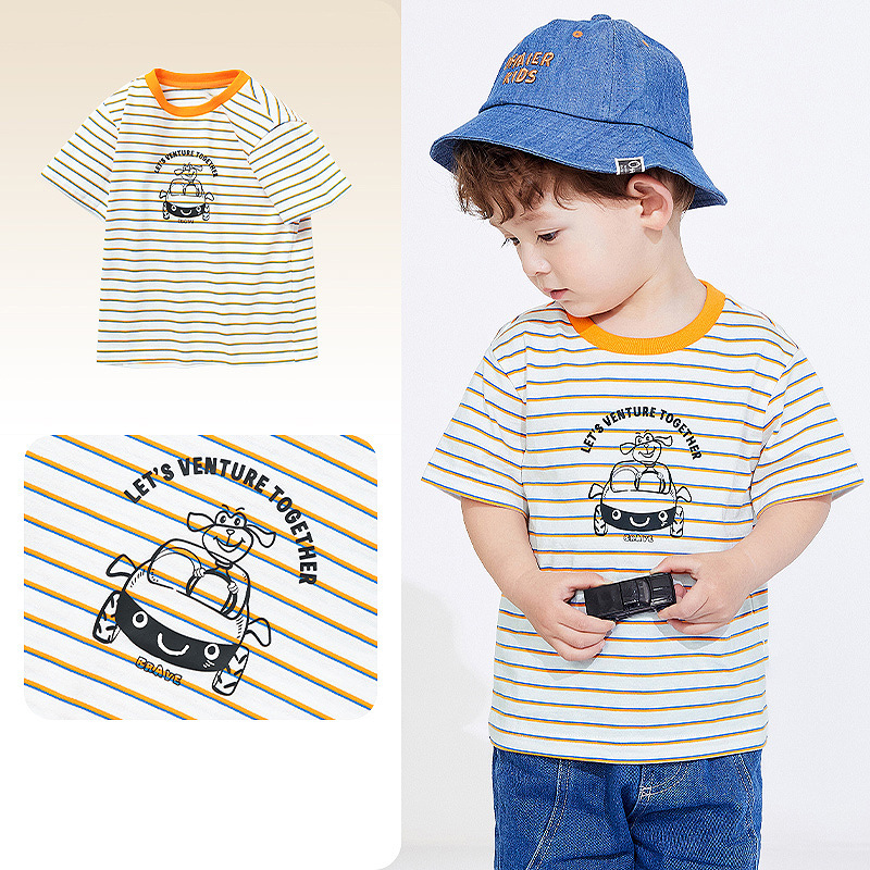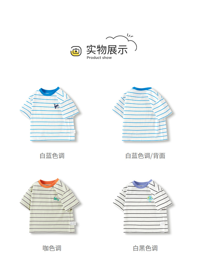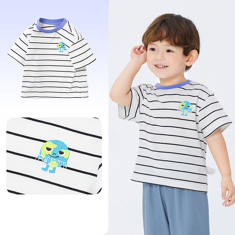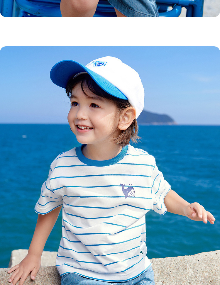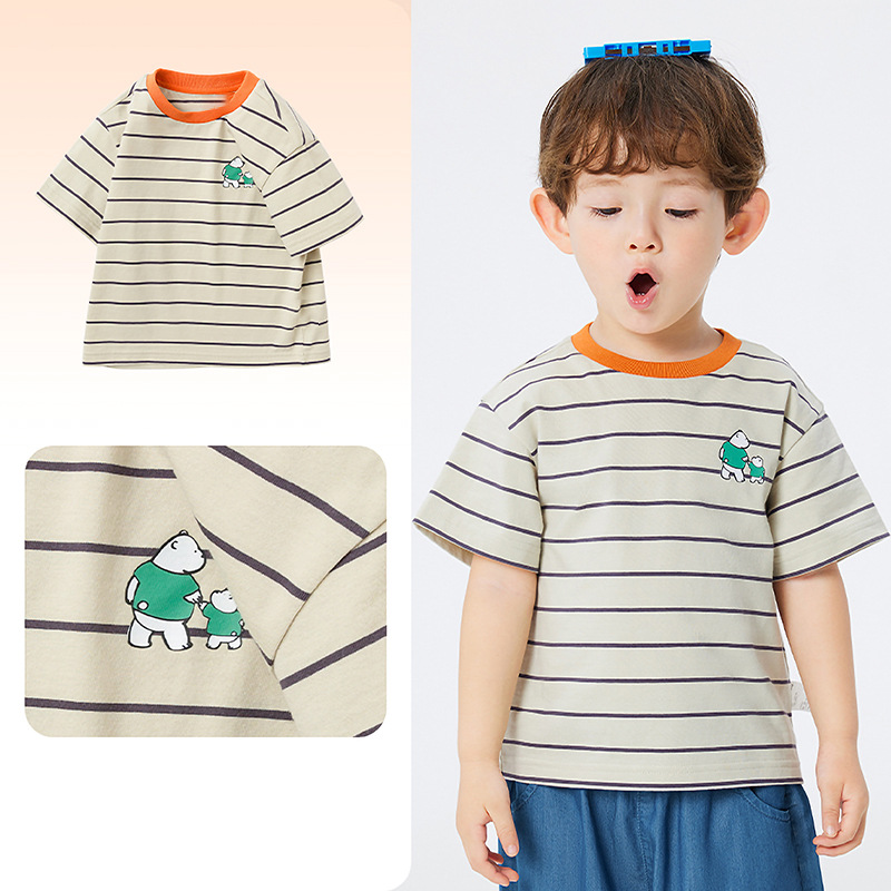 어린이 티셔츠 소년 반팔 줄무늬 새 여름 원피스 어린이 아기 탑 코튼 만화베이스 셔츠 얇은 트렌디스토어 가기