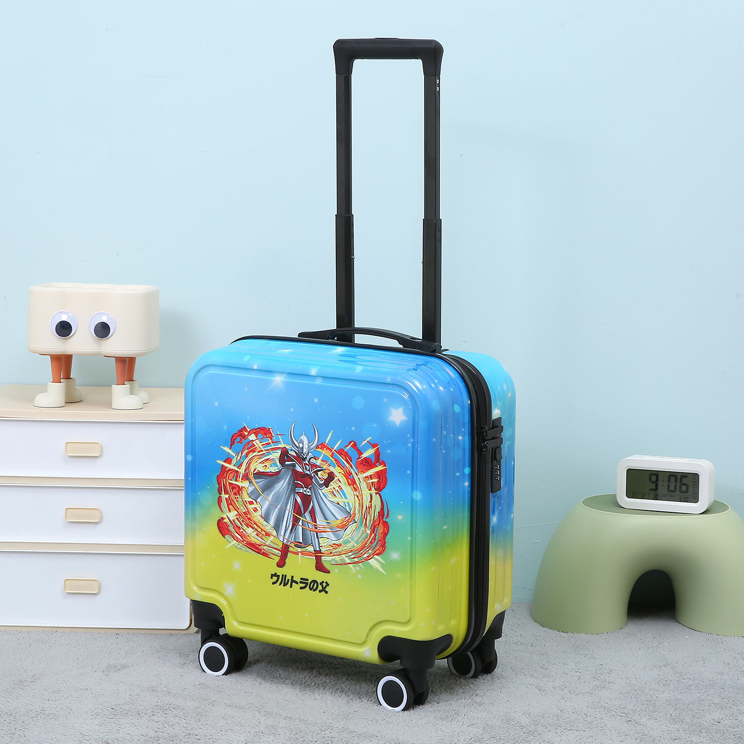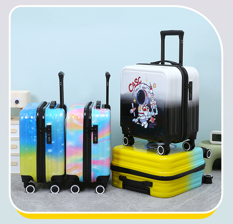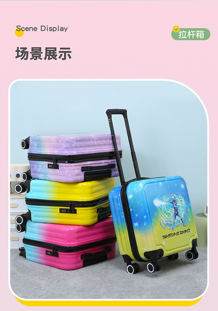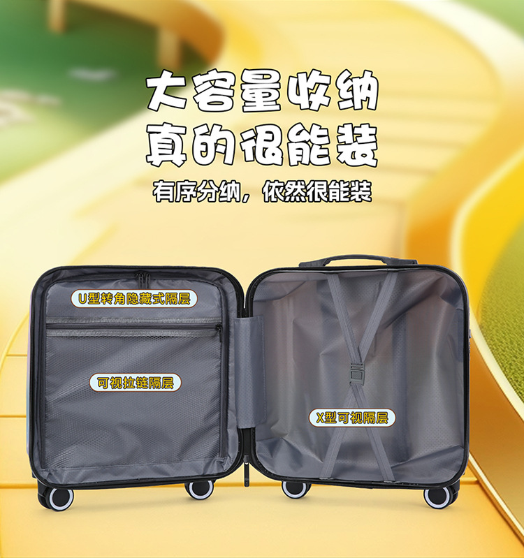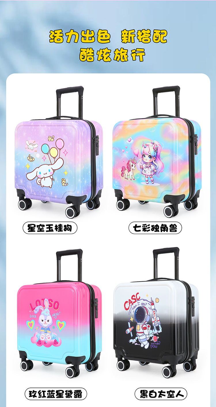 만화 수하물 18 인치 탑승 상자 무음 휠 라이트는 학생 어린이 여행 가방 비밀번호 트롤리 케이스를 앉을 수 있습니다.스토어 가기