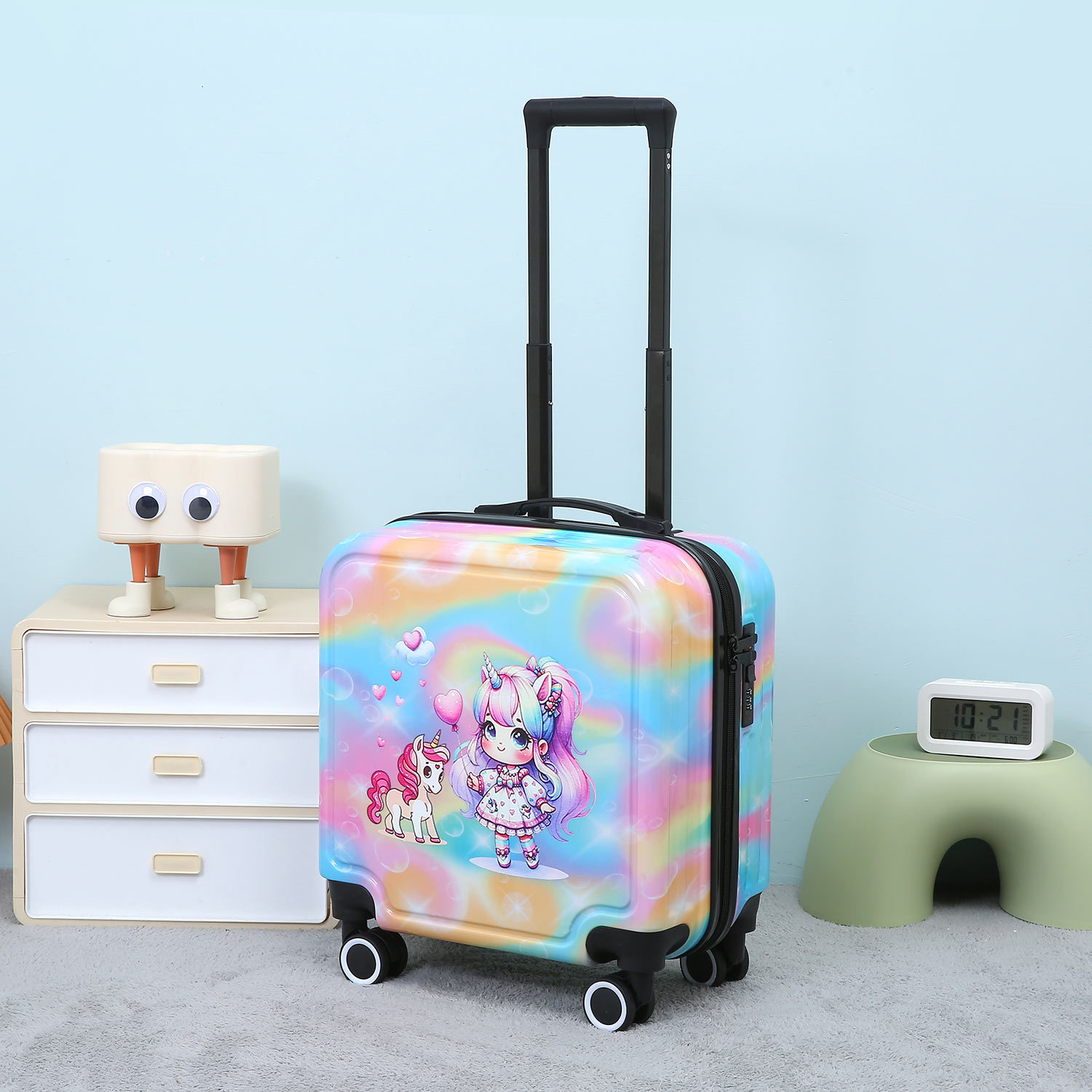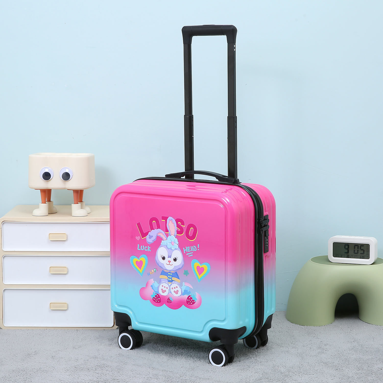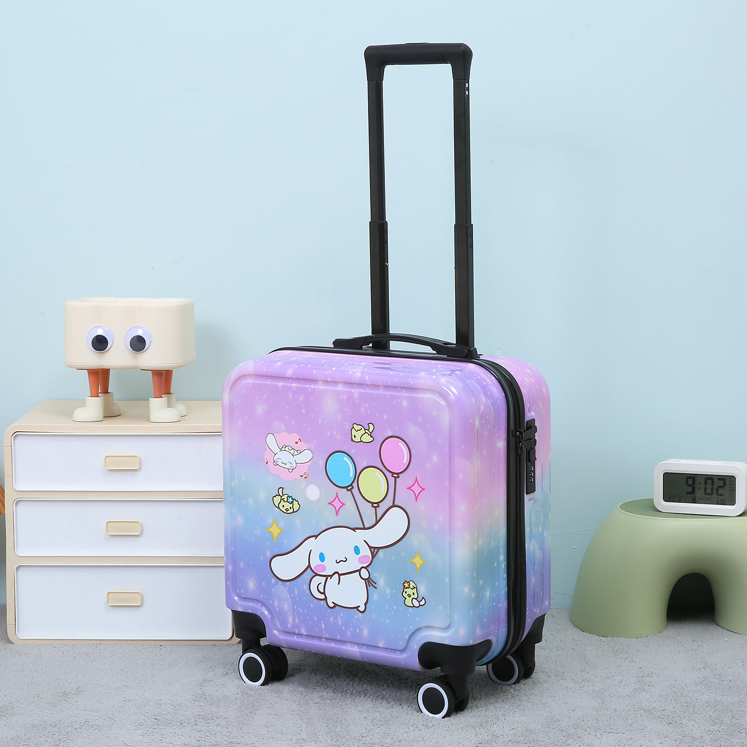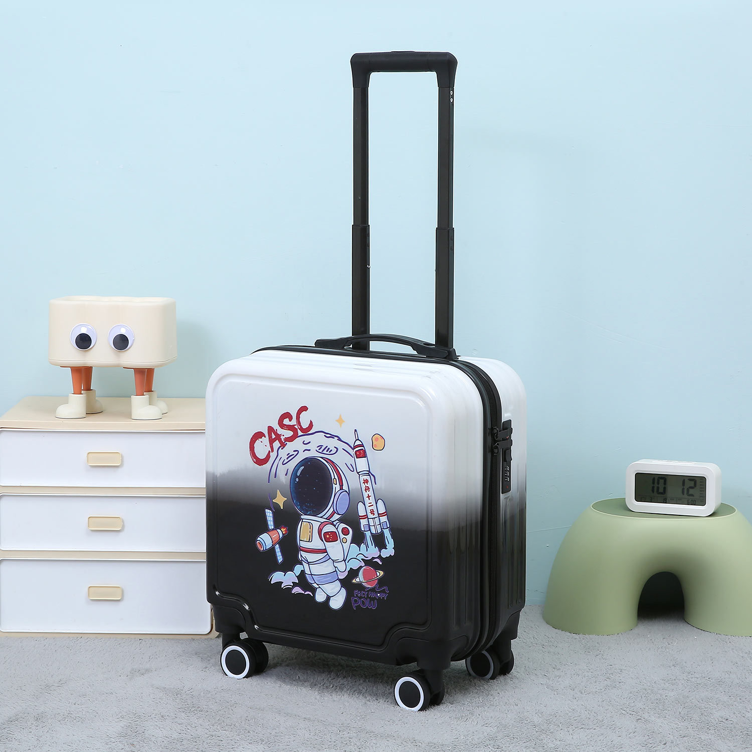만화 수하물 18 인치 탑승 상자 무음 휠 라이트는 학생 어린이 여행 가방 비밀번호 트롤리 케이스를 앉을 수 있습니다.스토어 가기