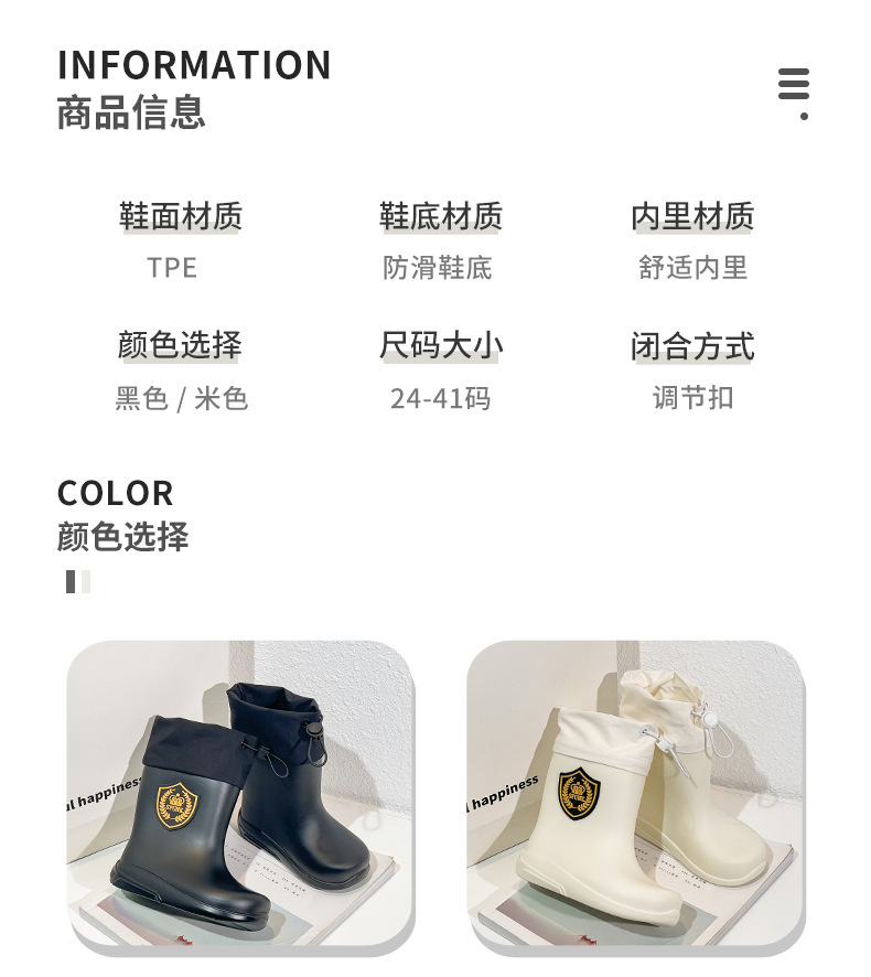 어린이 비 부츠 여성 미끄럼 방지 일본 소년 및 소녀 아기 비 부츠 O 풍미를 가진 경량 어린이 방수 신발