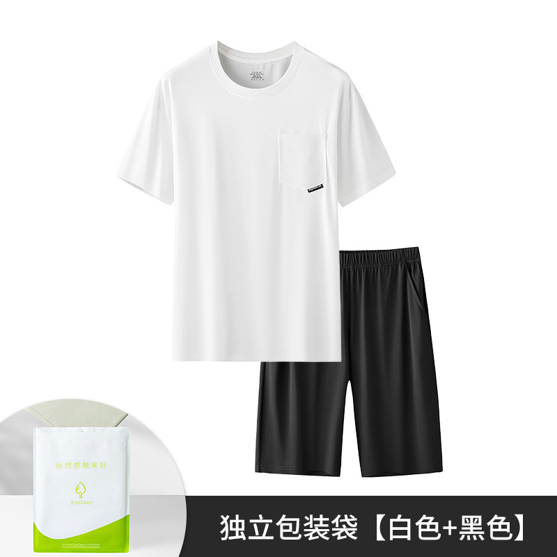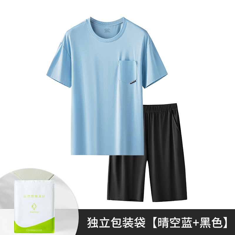 새로운 Youkosi 봄과 여름 남성 반팔 반바지 세트 얇은 홈 의류 포켓 티셔츠 단색 잠옷 잠옷