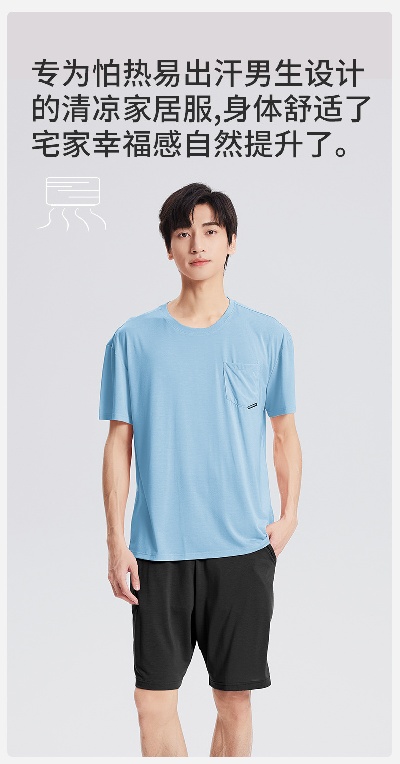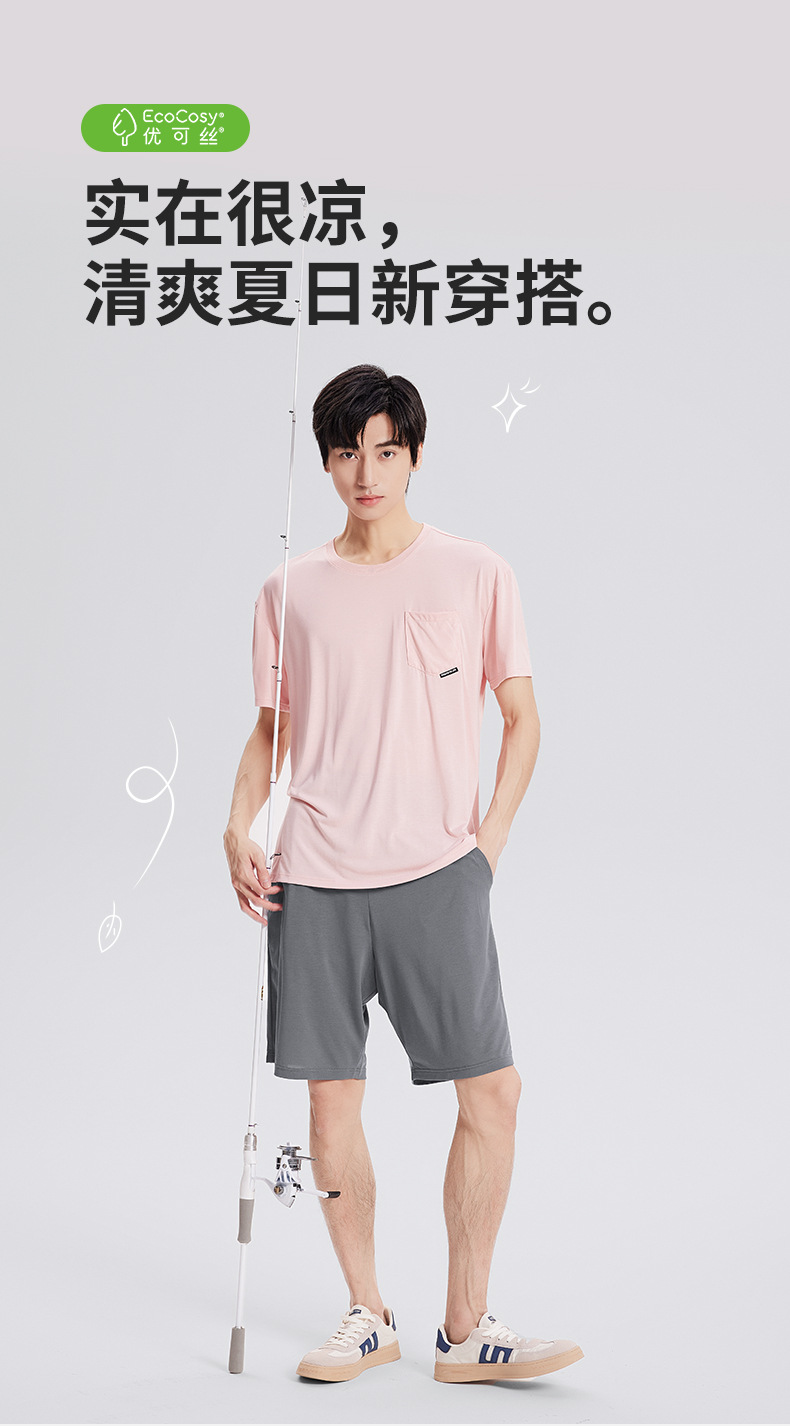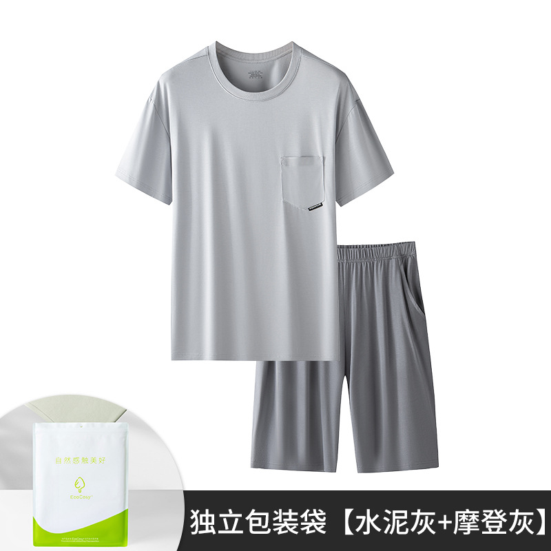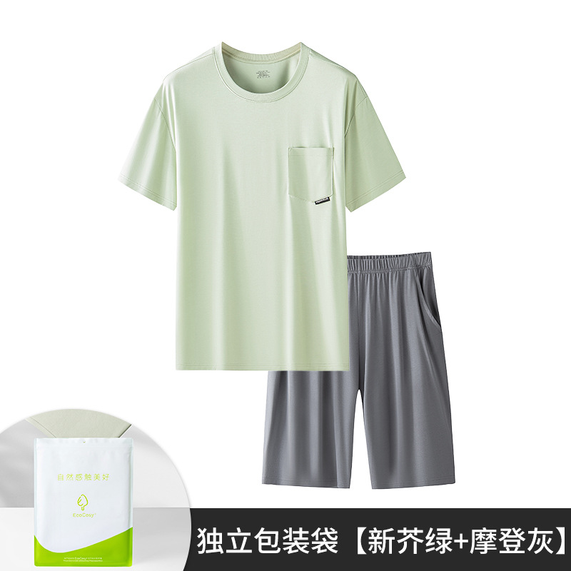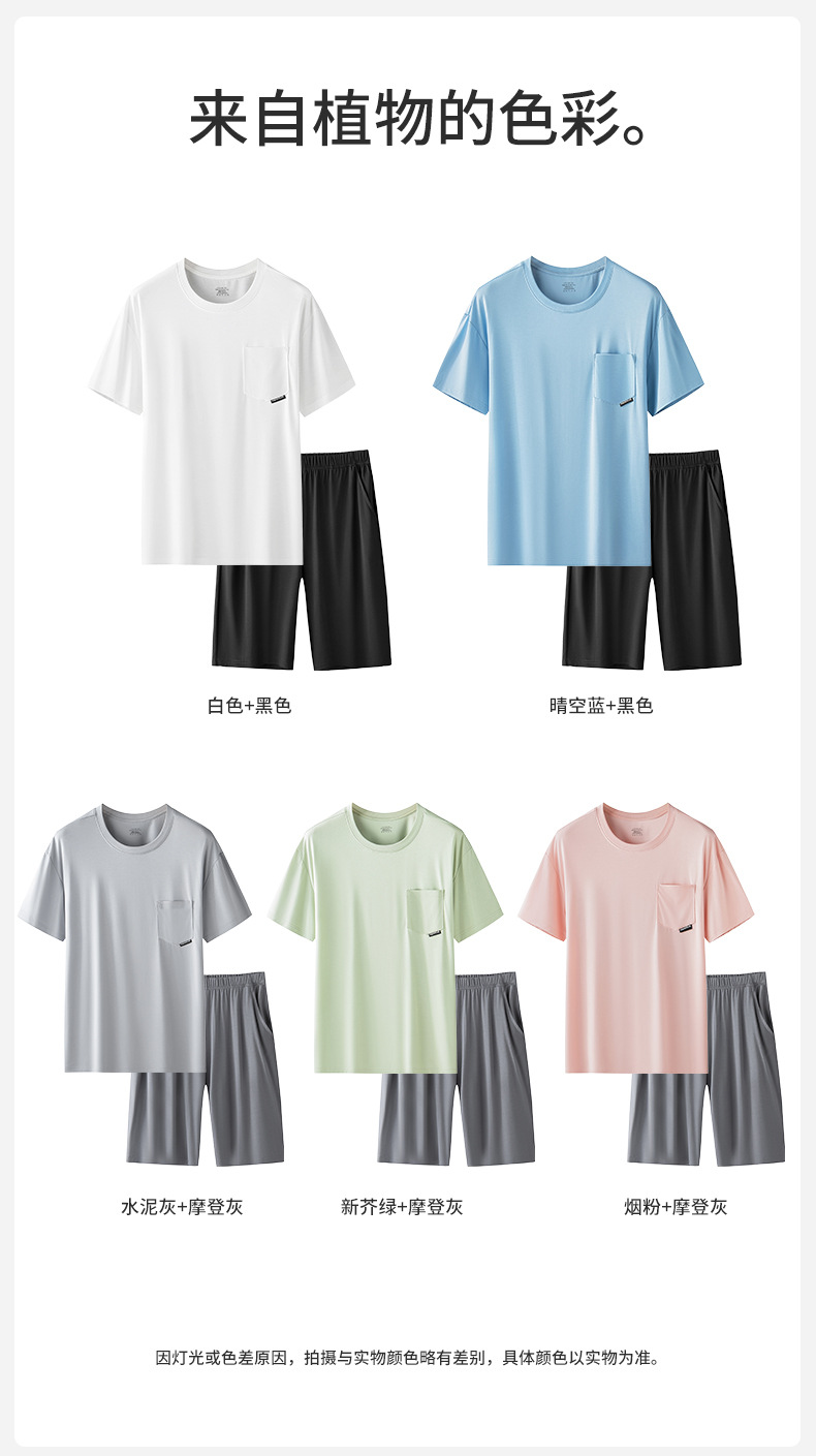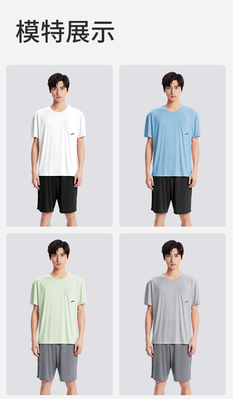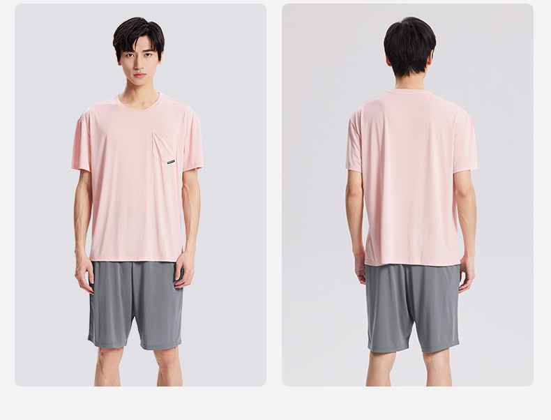 새로운 Youkosi 봄과 여름 남성 반팔 반바지 세트 얇은 홈 의류 포켓 티셔츠 단색 잠옷 잠옷스토어 가기