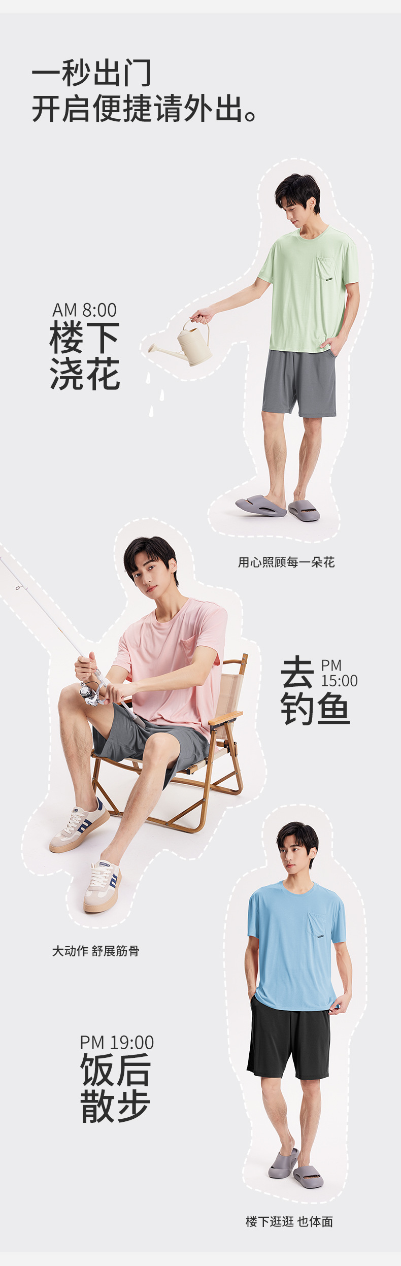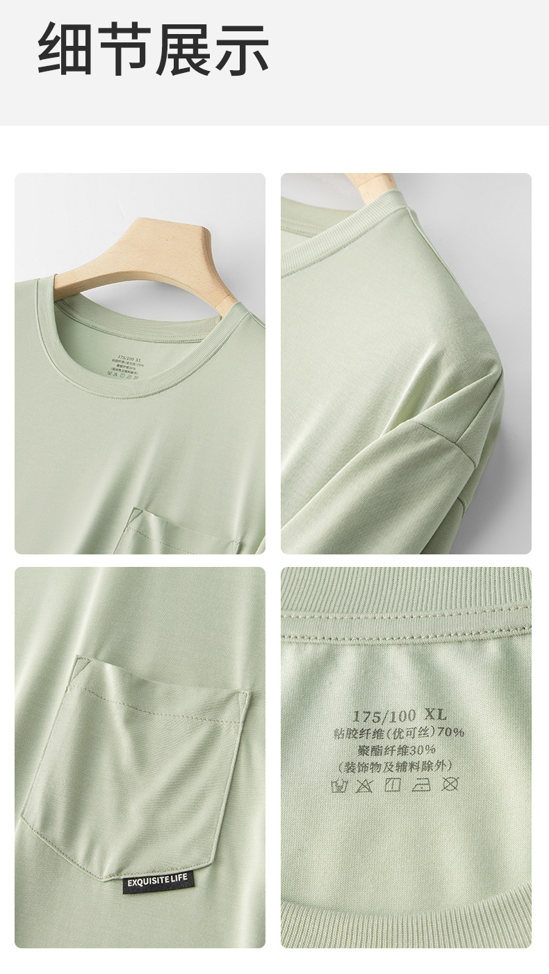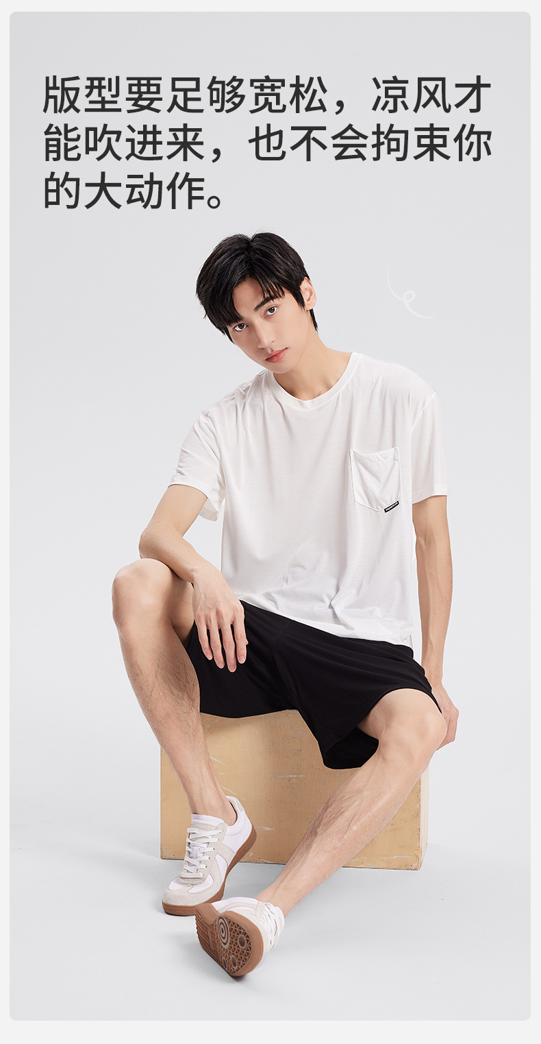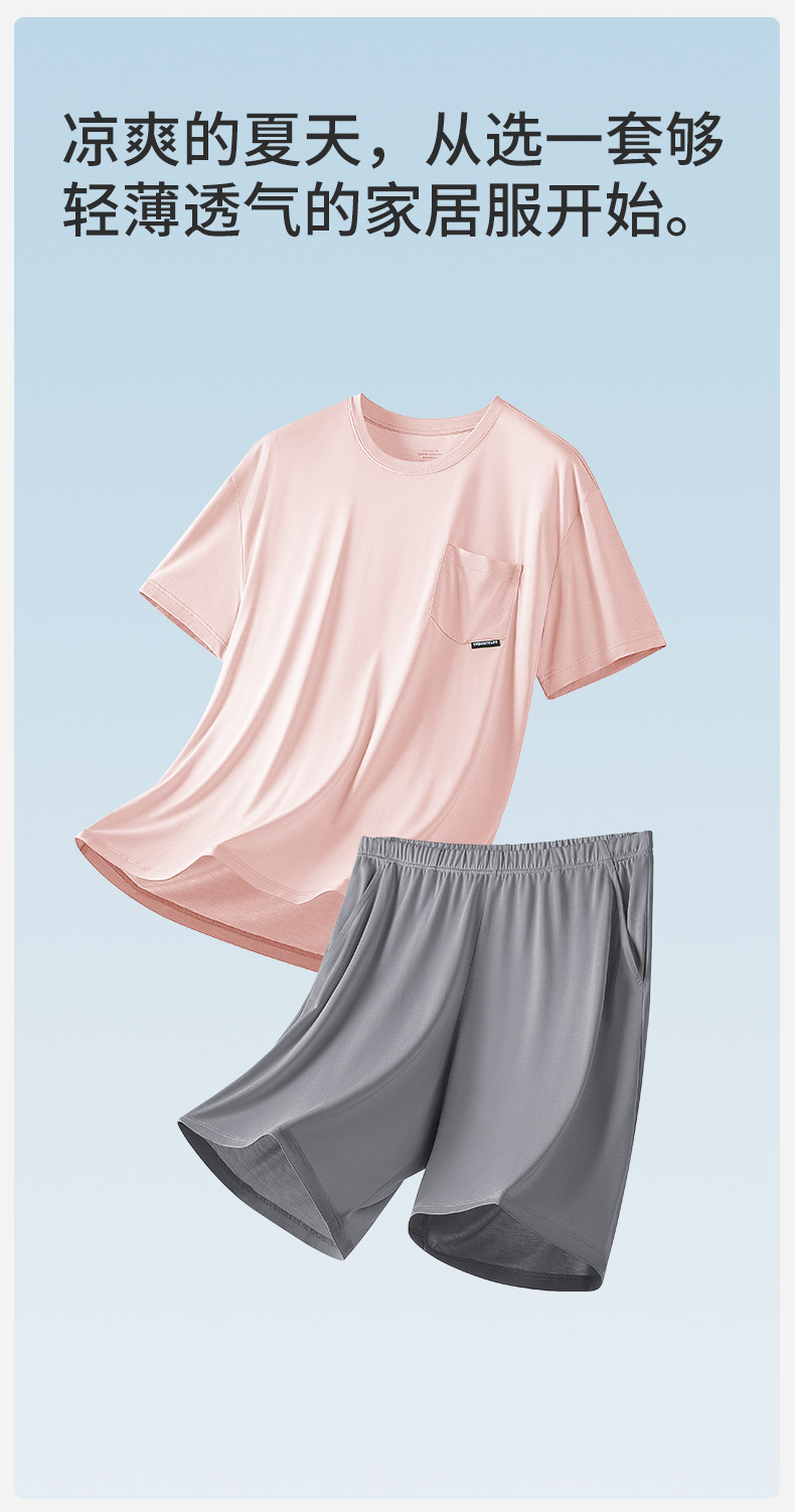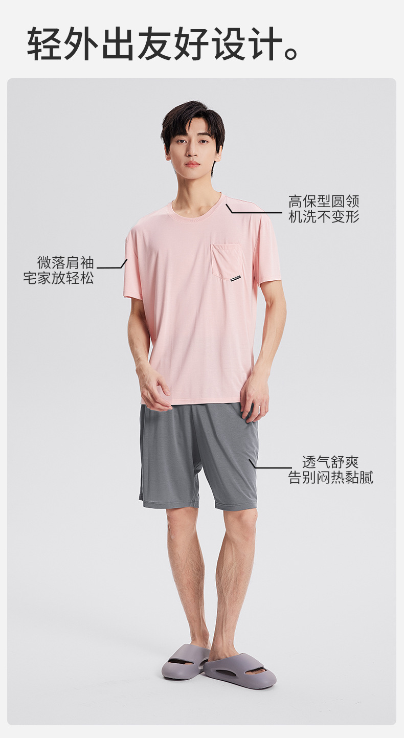 새로운 Youkosi 봄과 여름 남성 반팔 반바지 세트 얇은 홈 의류 포켓 티셔츠 단색 잠옷 잠옷스토어 가기