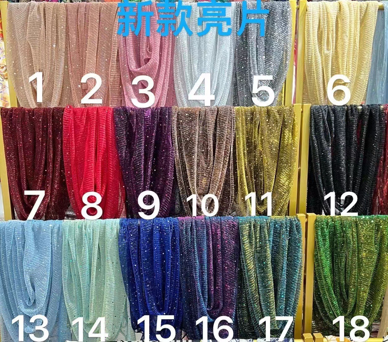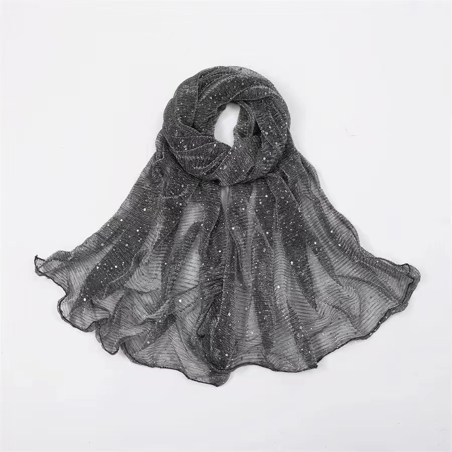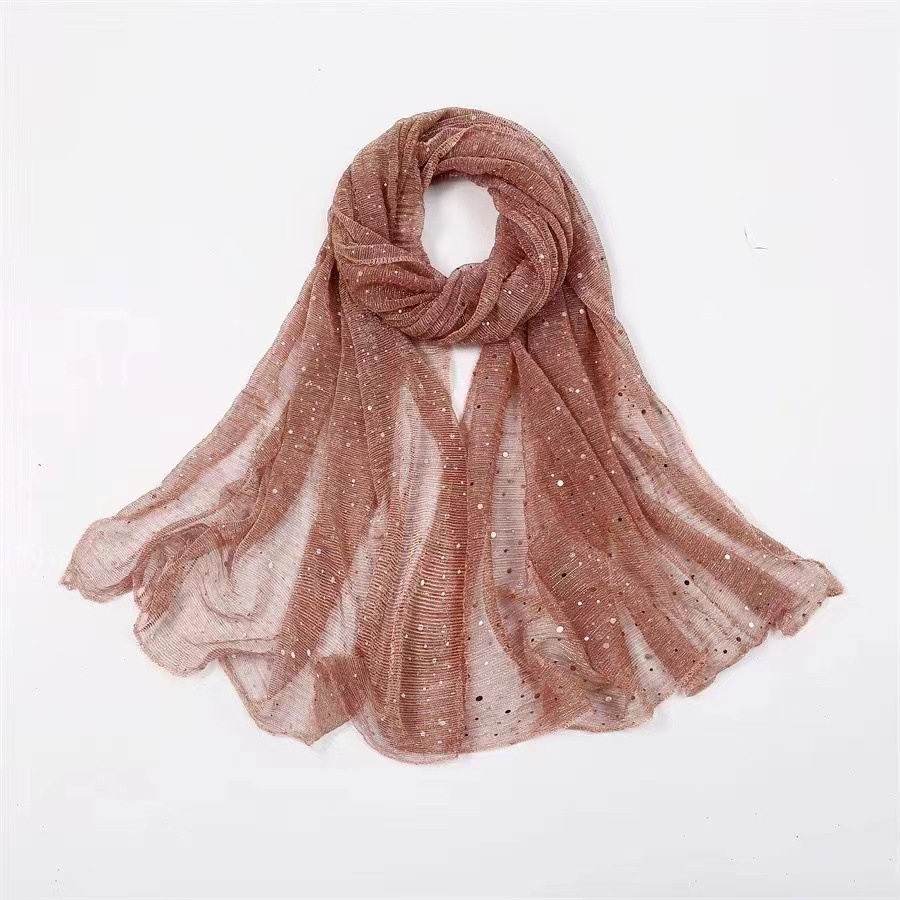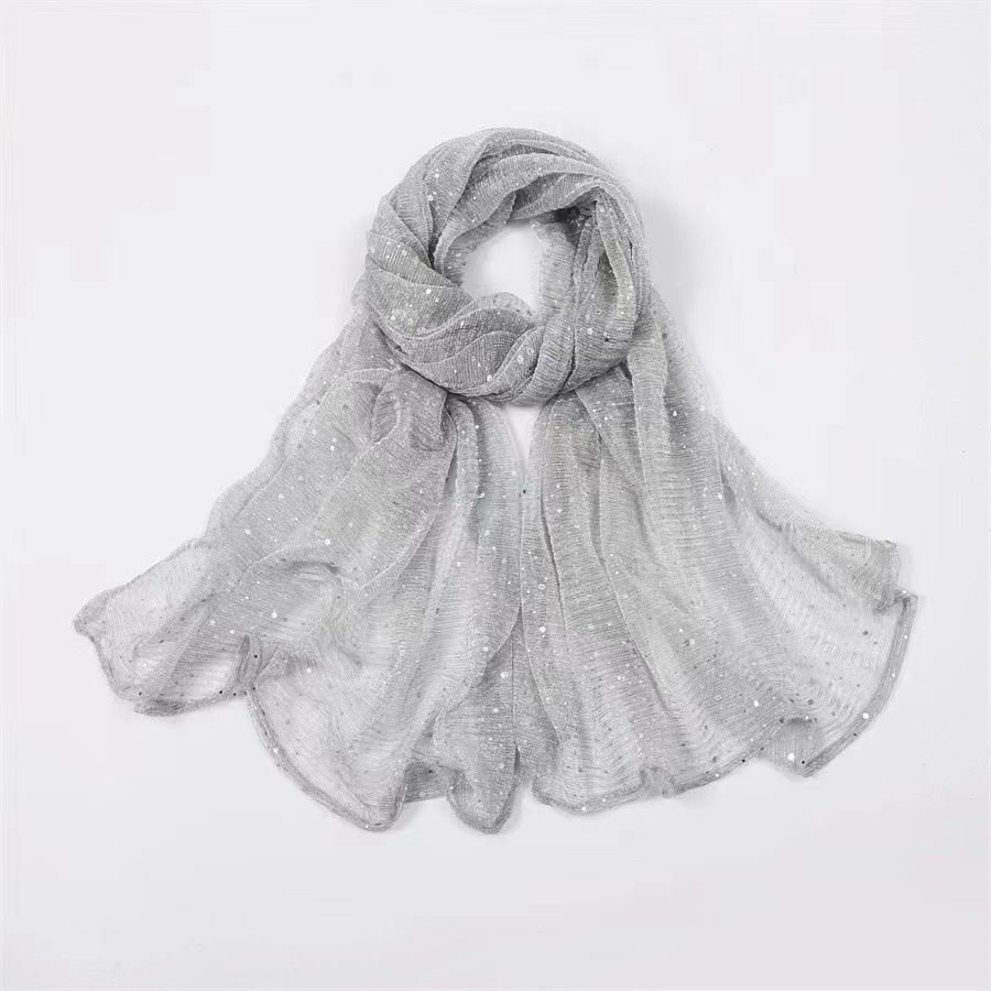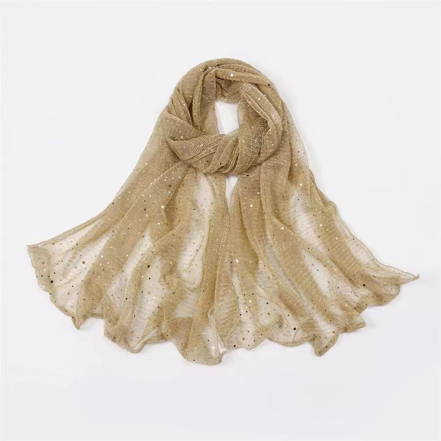 말레이시아 인도네시아 인기있는 긴 스카프 크로스 보더 핫 새로운 스팽글 골드 및 실버 폴리 에스테르 터번 단색 단순 스팟스토어 가기