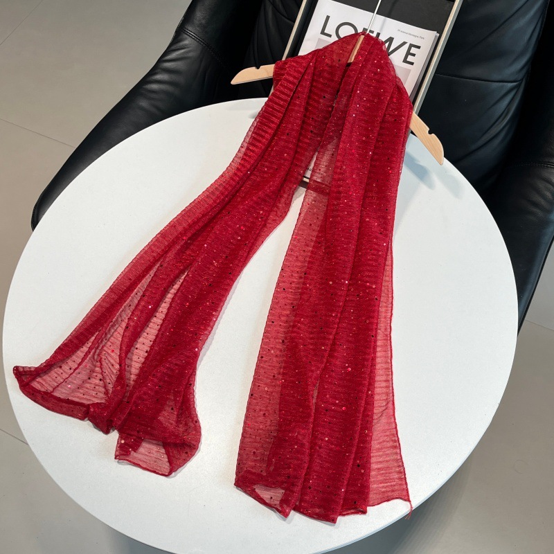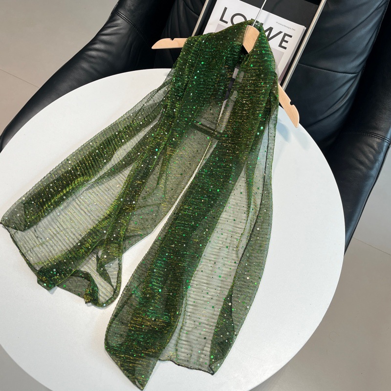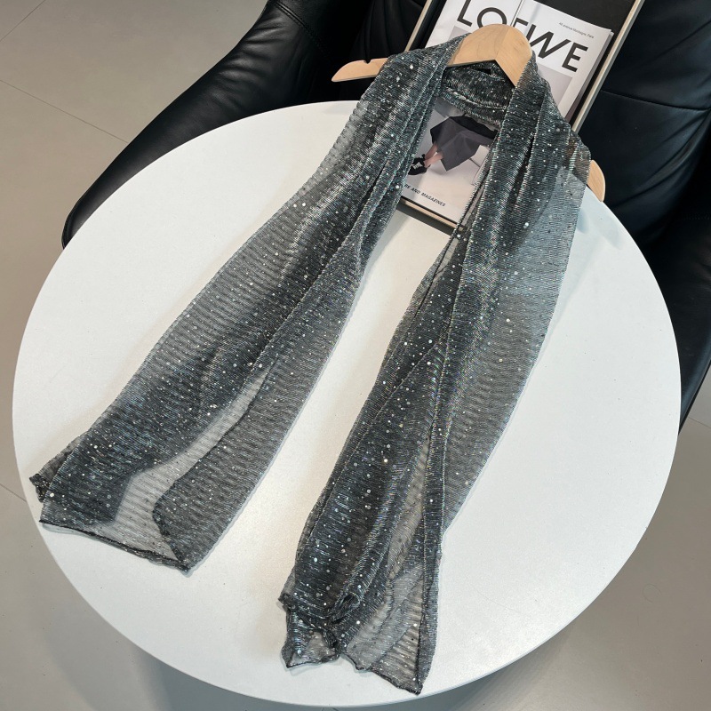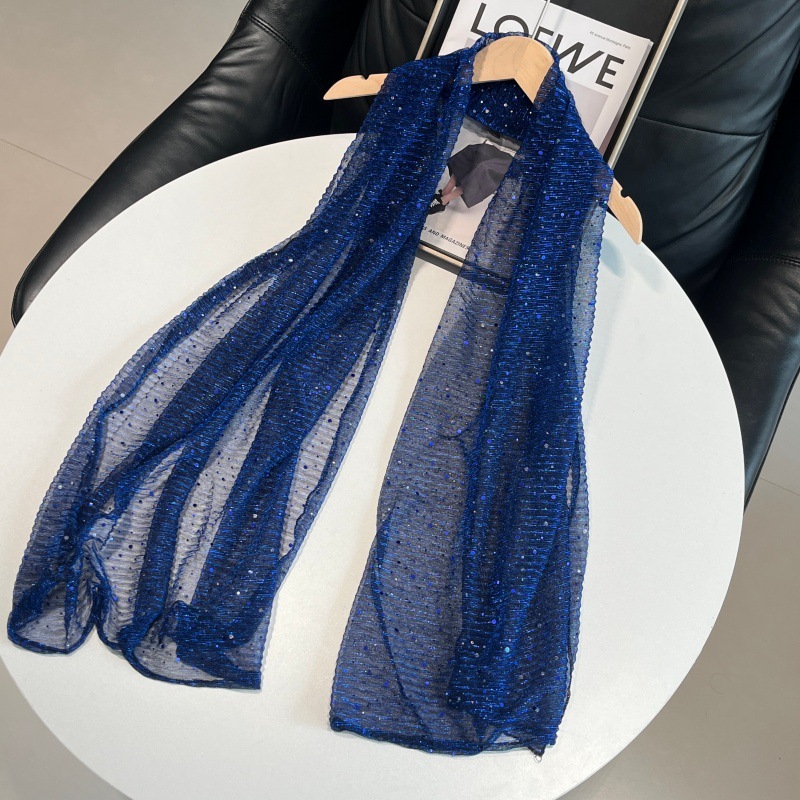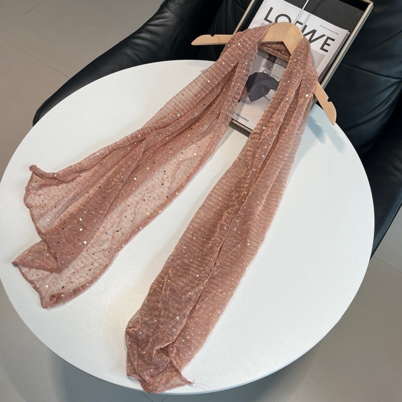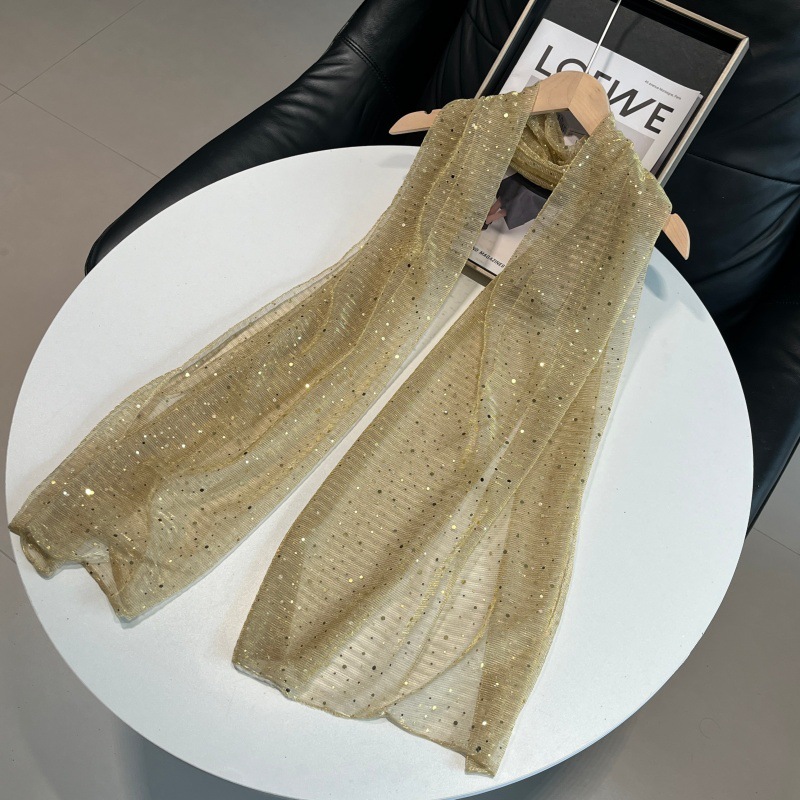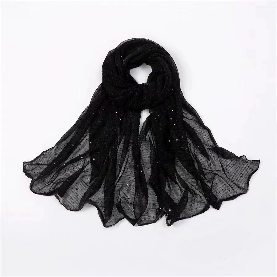 말레이시아 인도네시아 인기있는 긴 스카프 크로스 보더 핫 새로운 스팽글 골드 및 실버 폴리 에스테르 터번 단색 단순 스팟스토어 가기