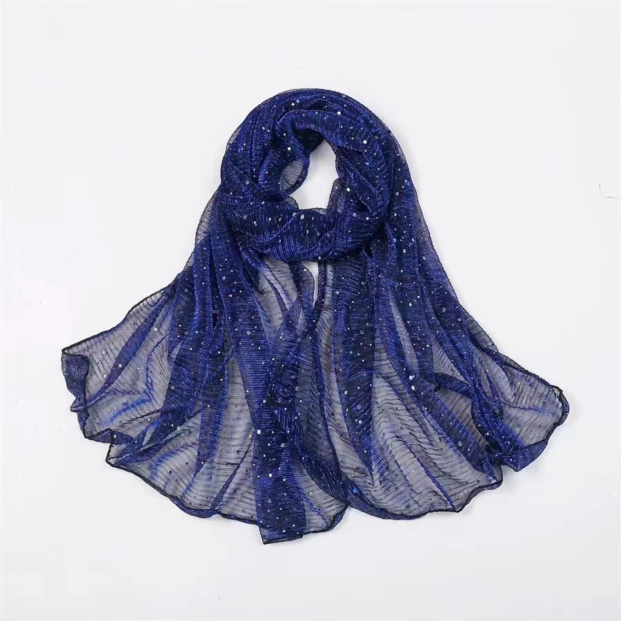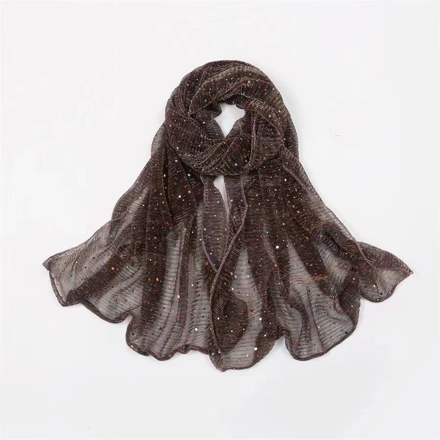 말레이시아 인도네시아 인기있는 긴 스카프 크로스 보더 핫 새로운 스팽글 골드 및 실버 폴리 에스테르 터번 단색 단순 스팟