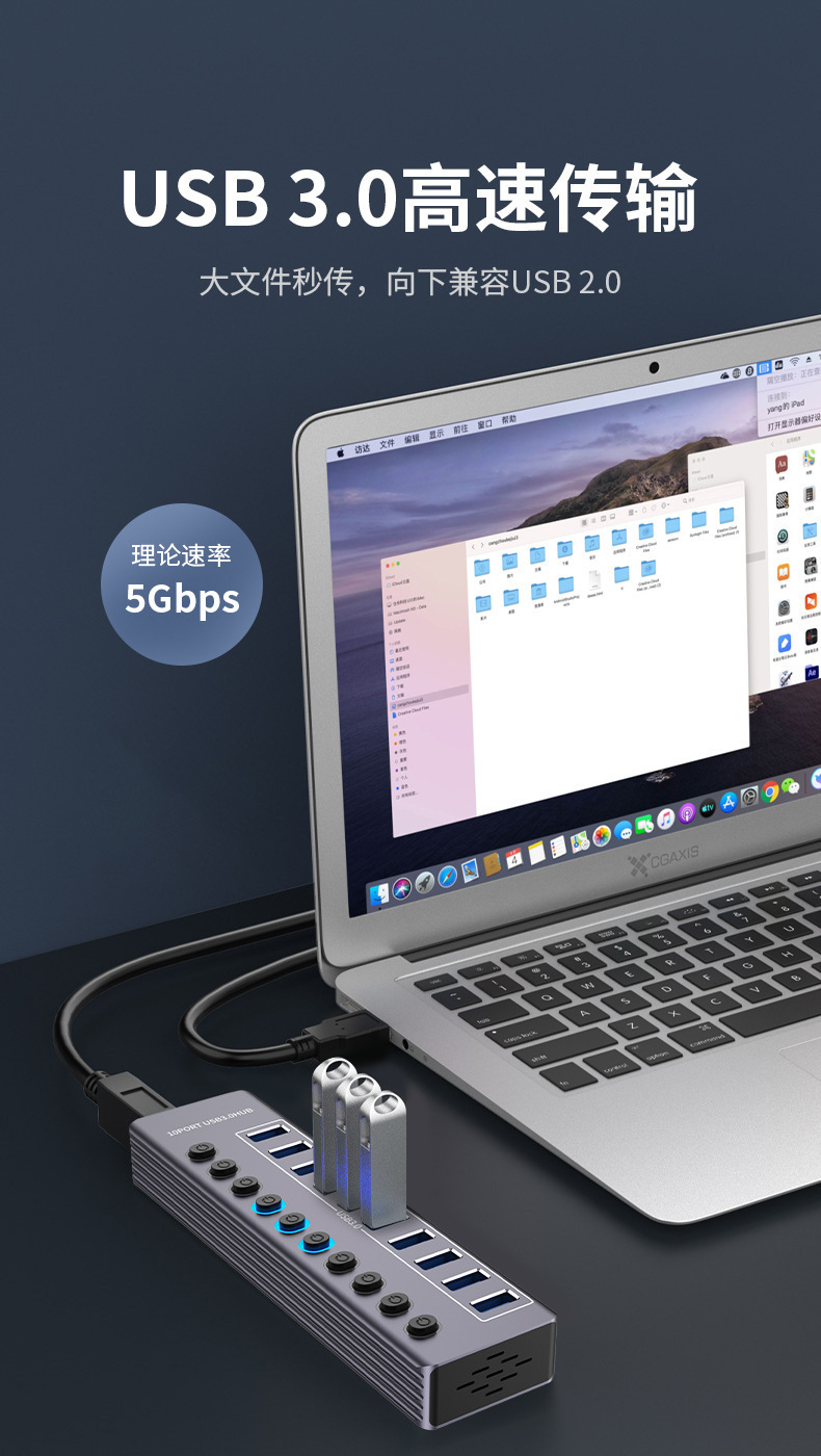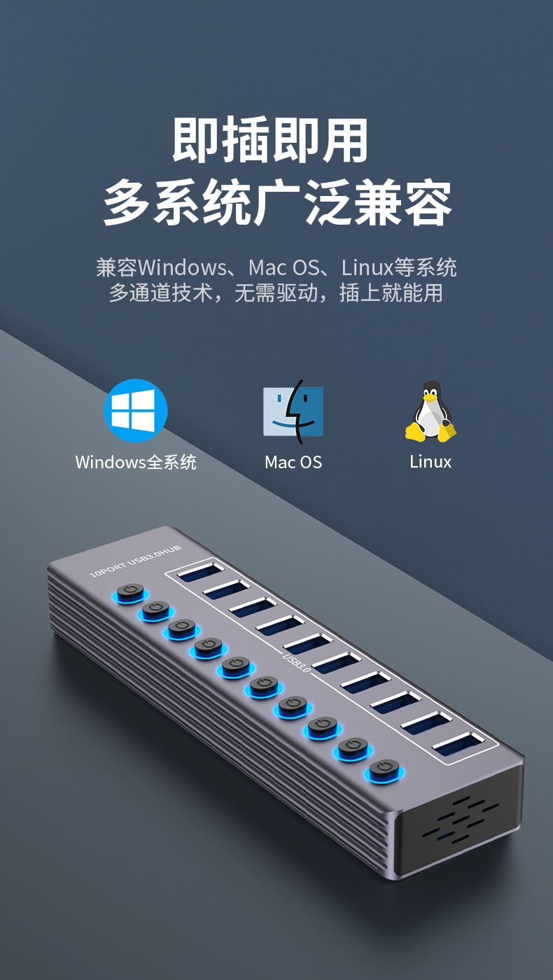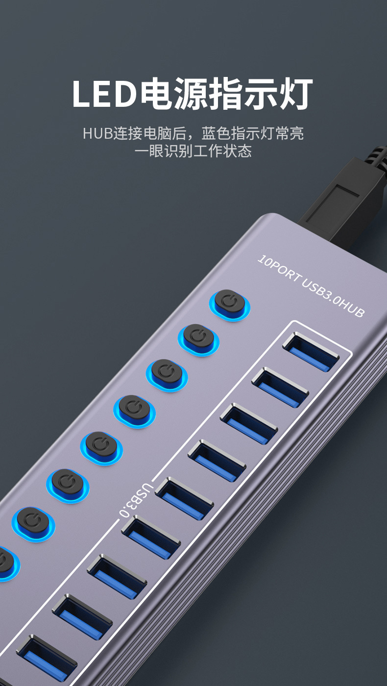 10 포트/7 포트 USB3.0HUB 확장기 10 포트/7 포트 스플리터 독립적 인 스위치 표시등스토어 가기
