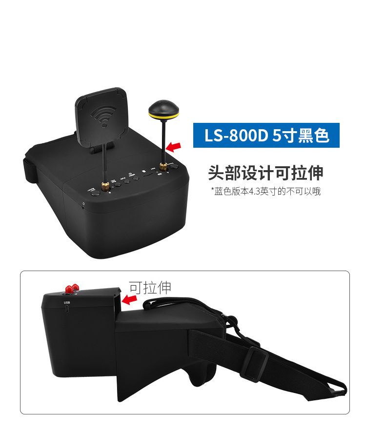 LS-800D 비디오 안경 5.8G 수신 40CH 영상 전송 5inch DVR 녹화 FPV RC 자동차 드론