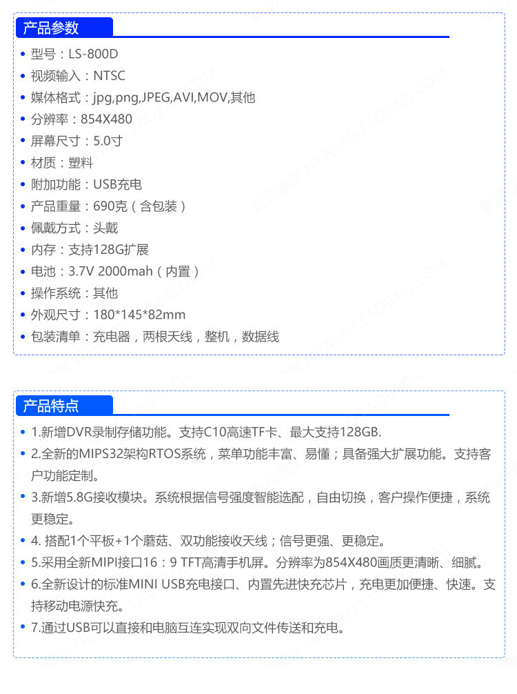 LS-800D 비디오 안경 5.8G 수신 40CH 영상 전송 5inch DVR 녹화 FPV RC 자동차 드론스토어 가기