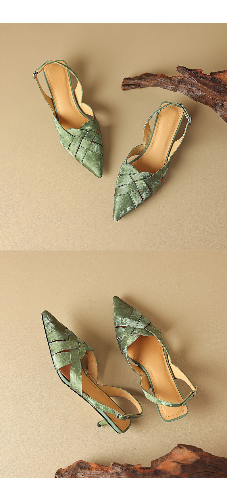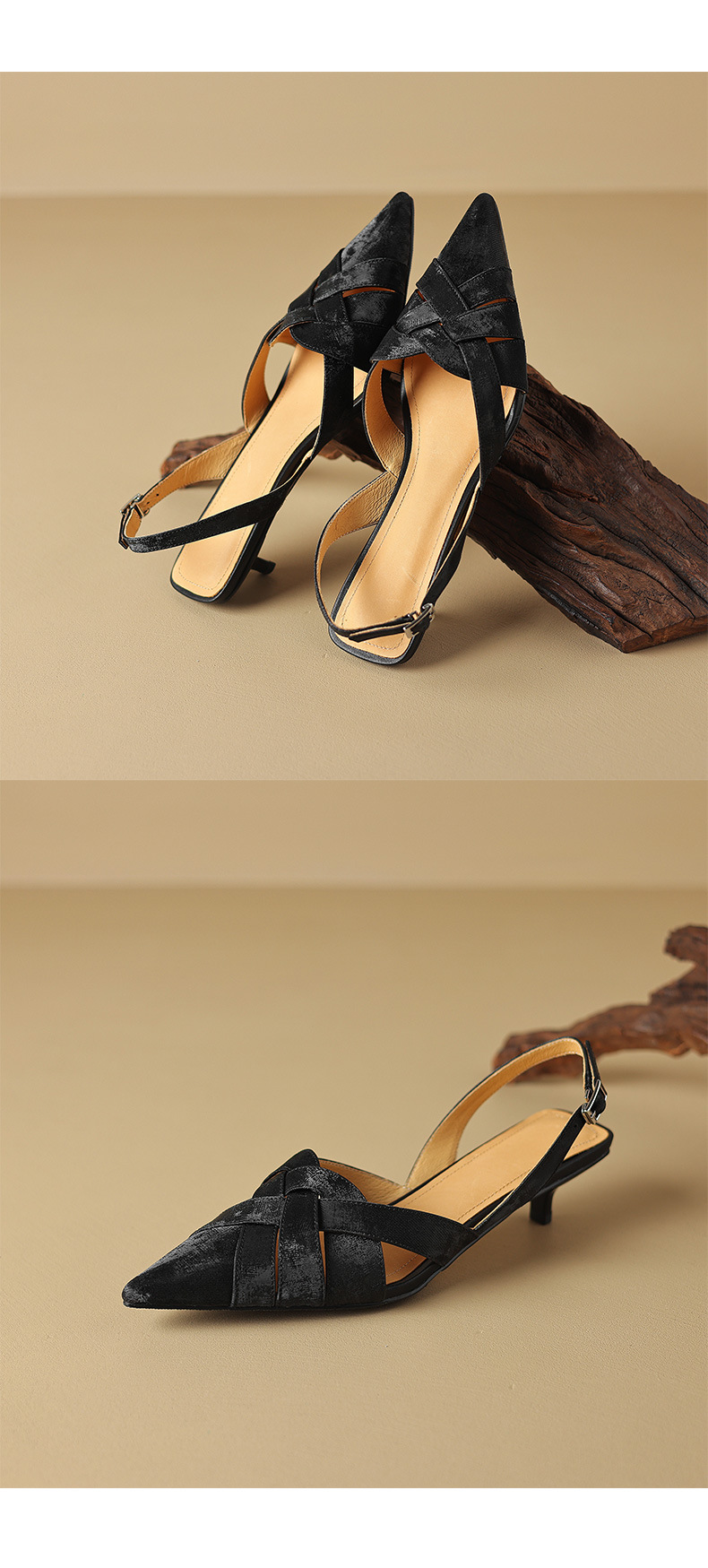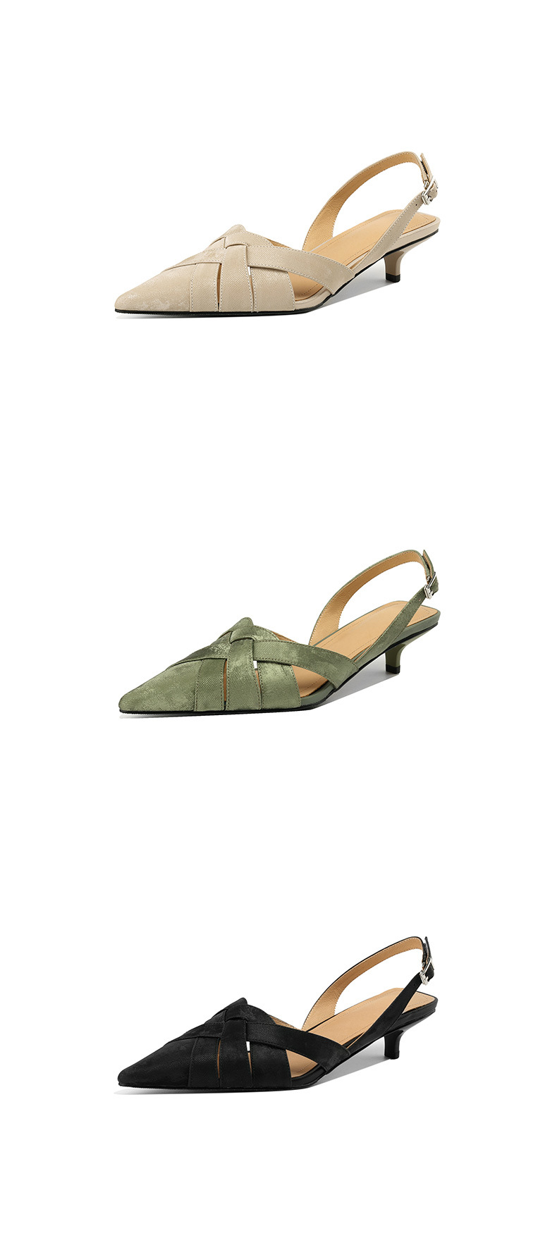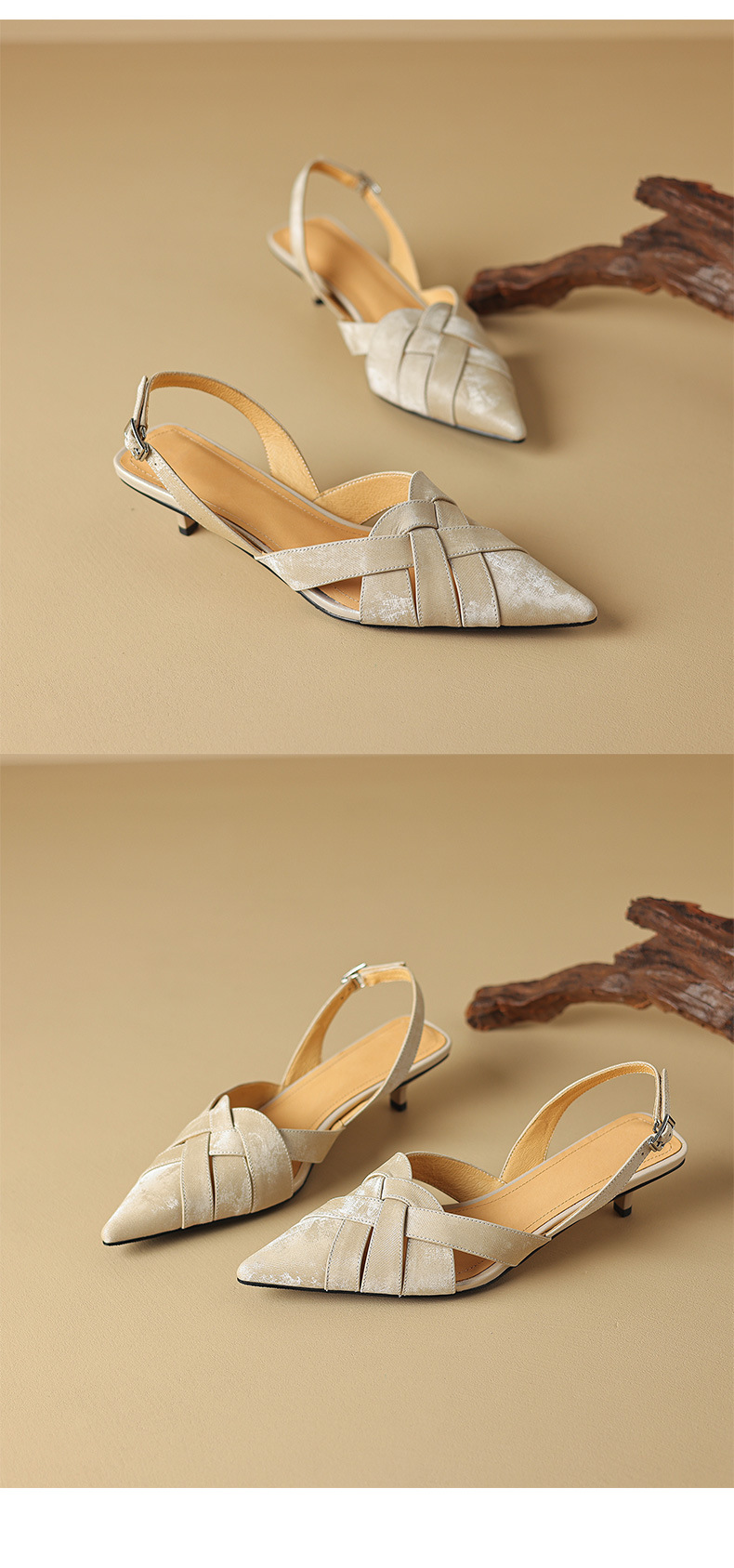 중공 Baotou 정품 가죽 로마 샌들 여성 여름 2024 새로운 미드 힐 스티치 포인팅 백 할로우 새로운 중국 여성 신발