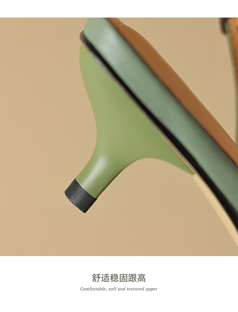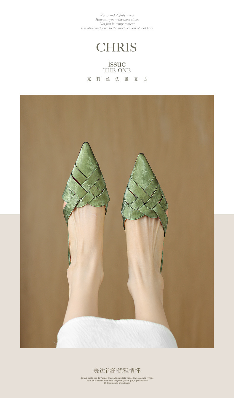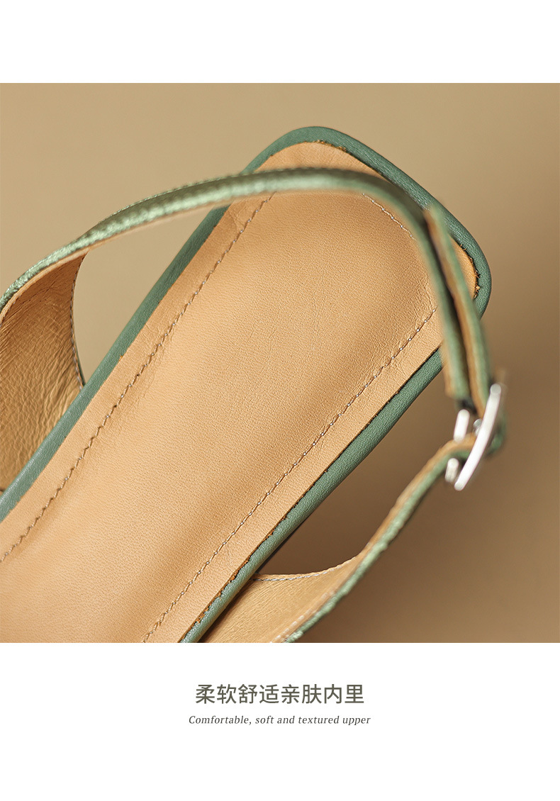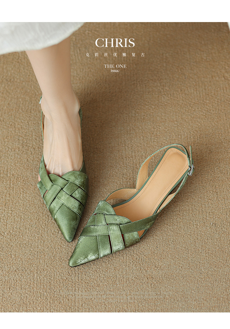 중공 Baotou 정품 가죽 로마 샌들 여성 여름 2024 새로운 미드 힐 스티치 포인팅 백 할로우 새로운 중국 여성 신발스토어 가기