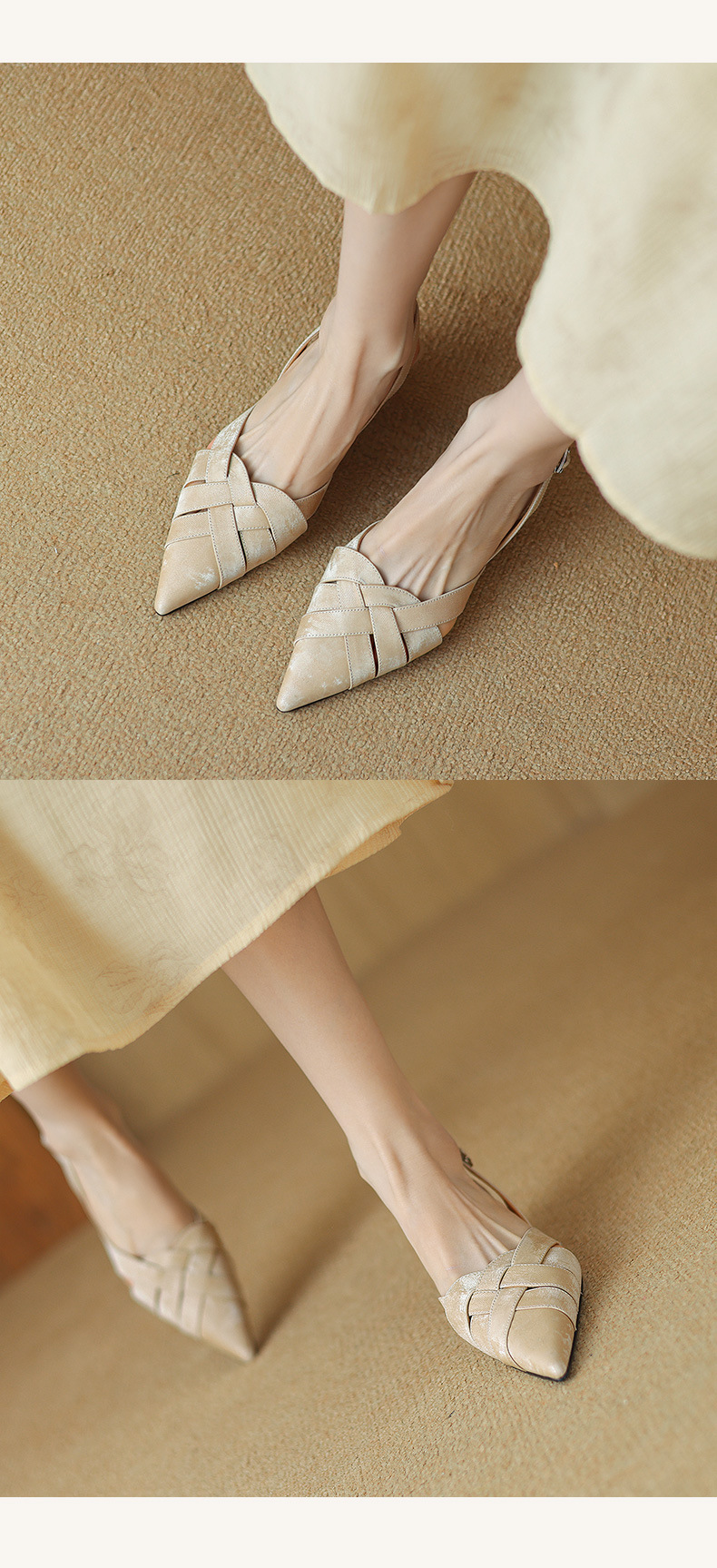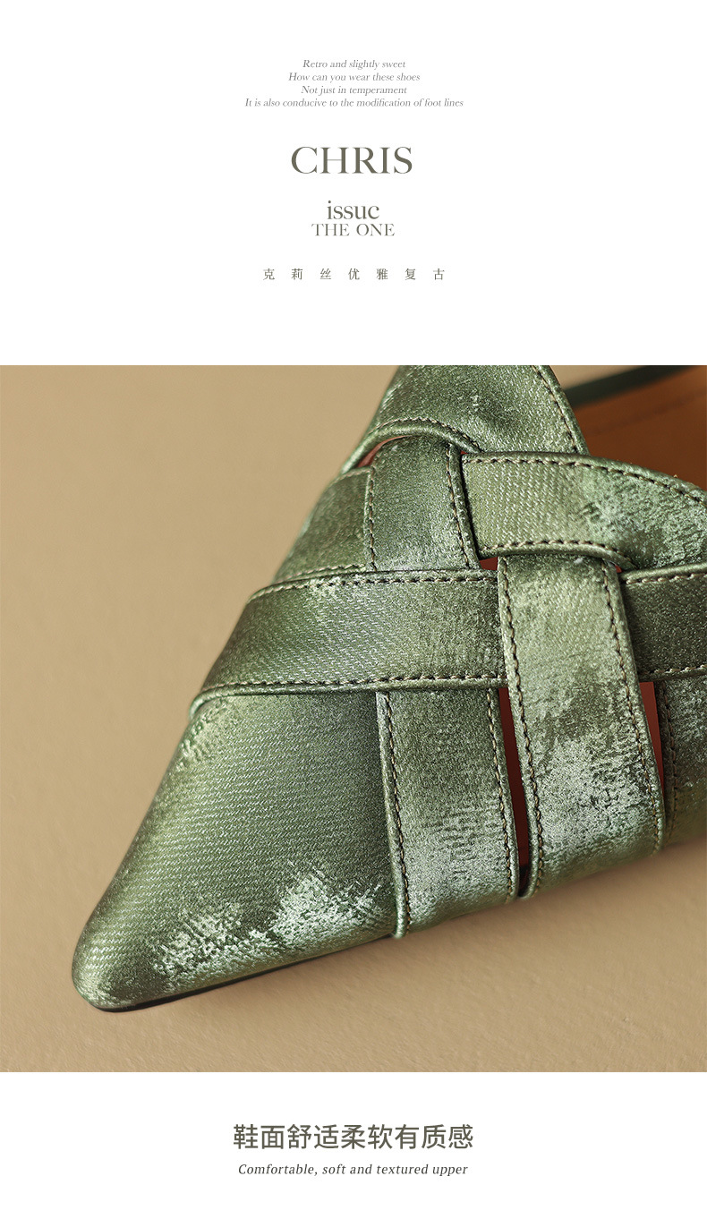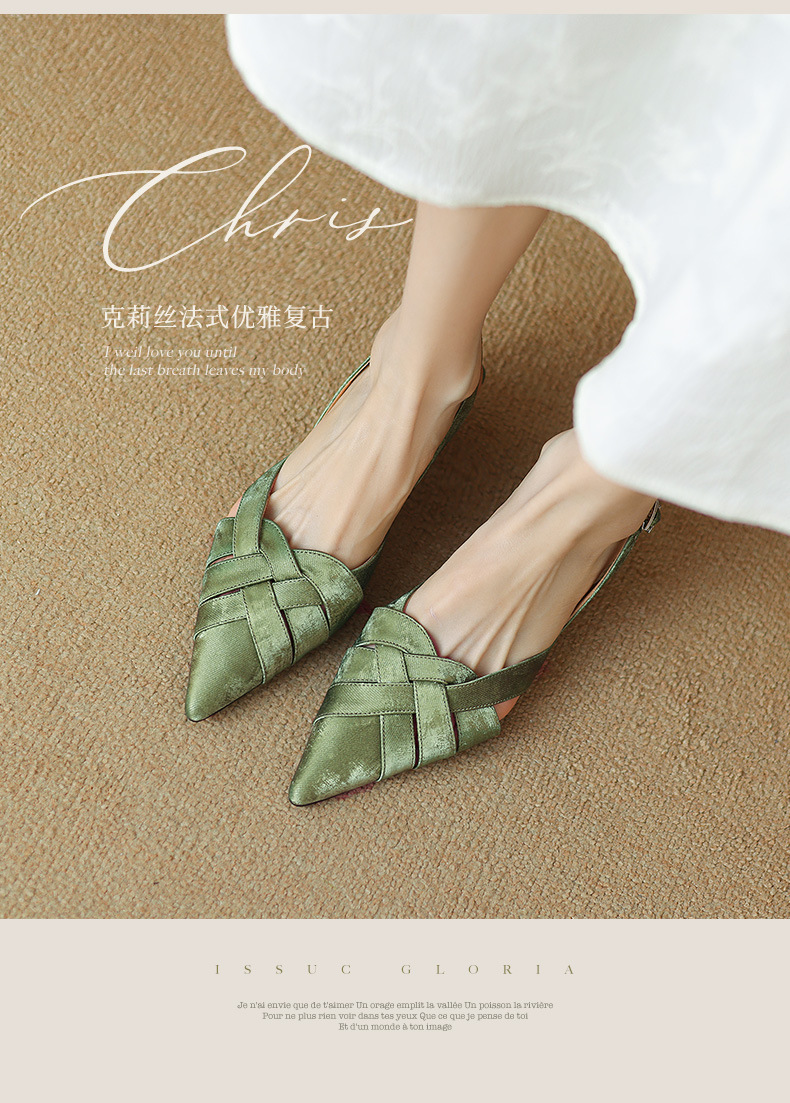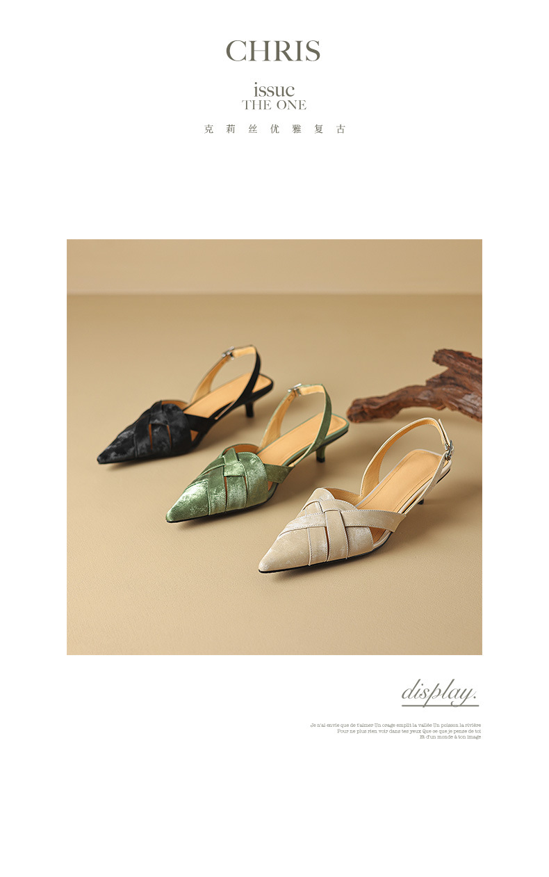 중공 Baotou 정품 가죽 로마 샌들 여성 여름 2024 새로운 미드 힐 스티치 포인팅 백 할로우 새로운 중국 여성 신발스토어 가기