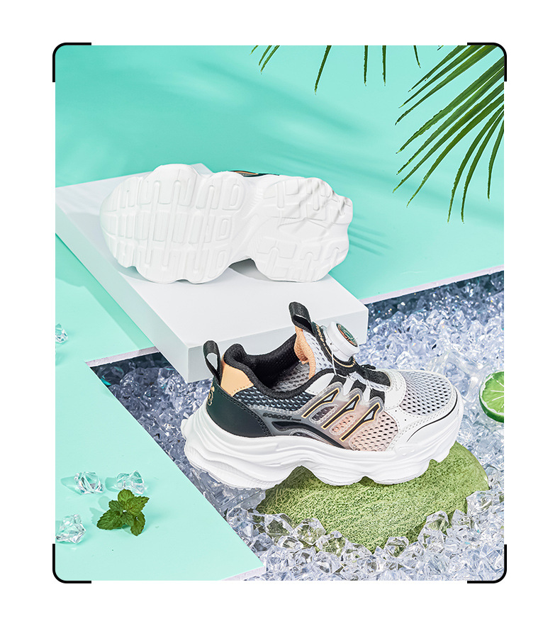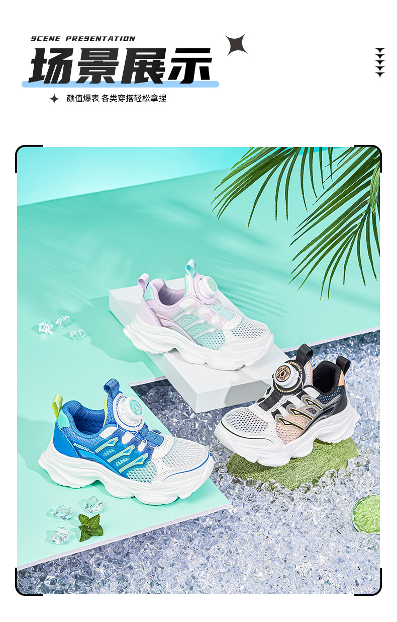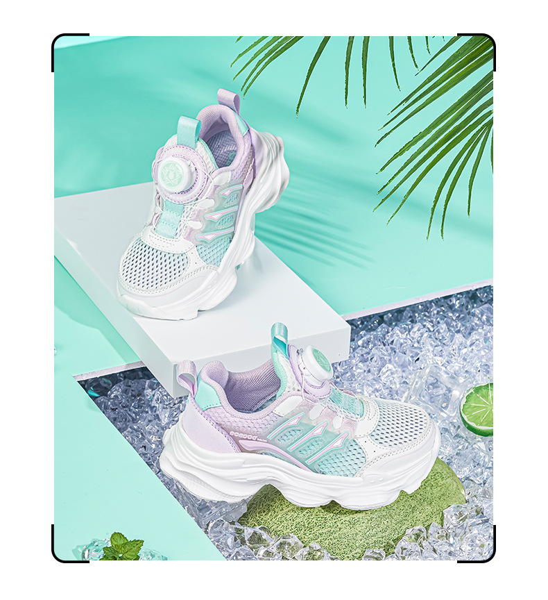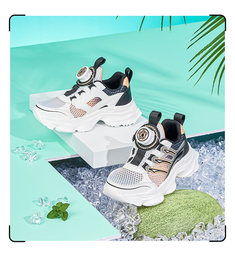 Babu Bean Girls 'Sports Shoes Summer Boys Running Shoes Single Mesh Breathable Children's Rotating Buckle Boys Middle and Big Children