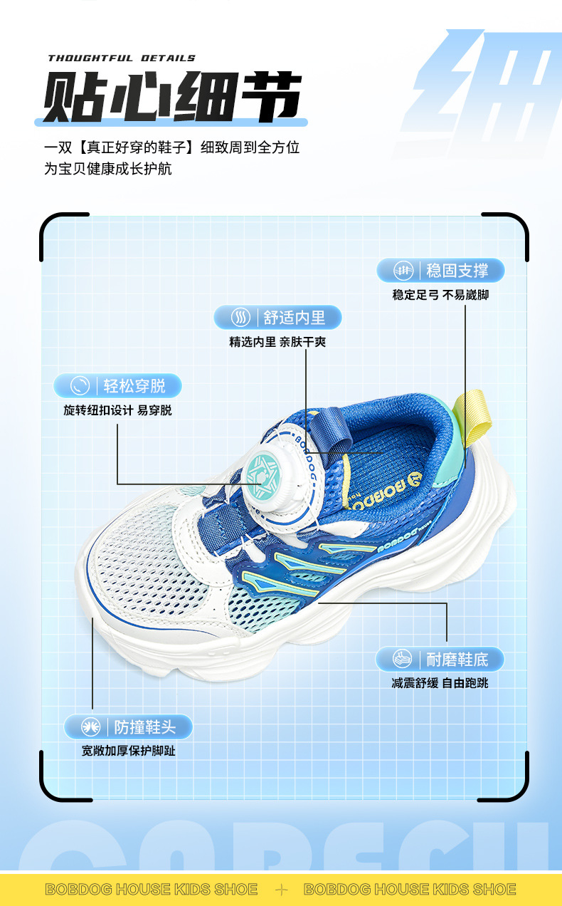 Babu Bean Girls 'Sports Shoes Summer Boys Running Shoes Single Mesh Breathable Children's Rotating Buckle Boys Middle and Big Children스토어 가기