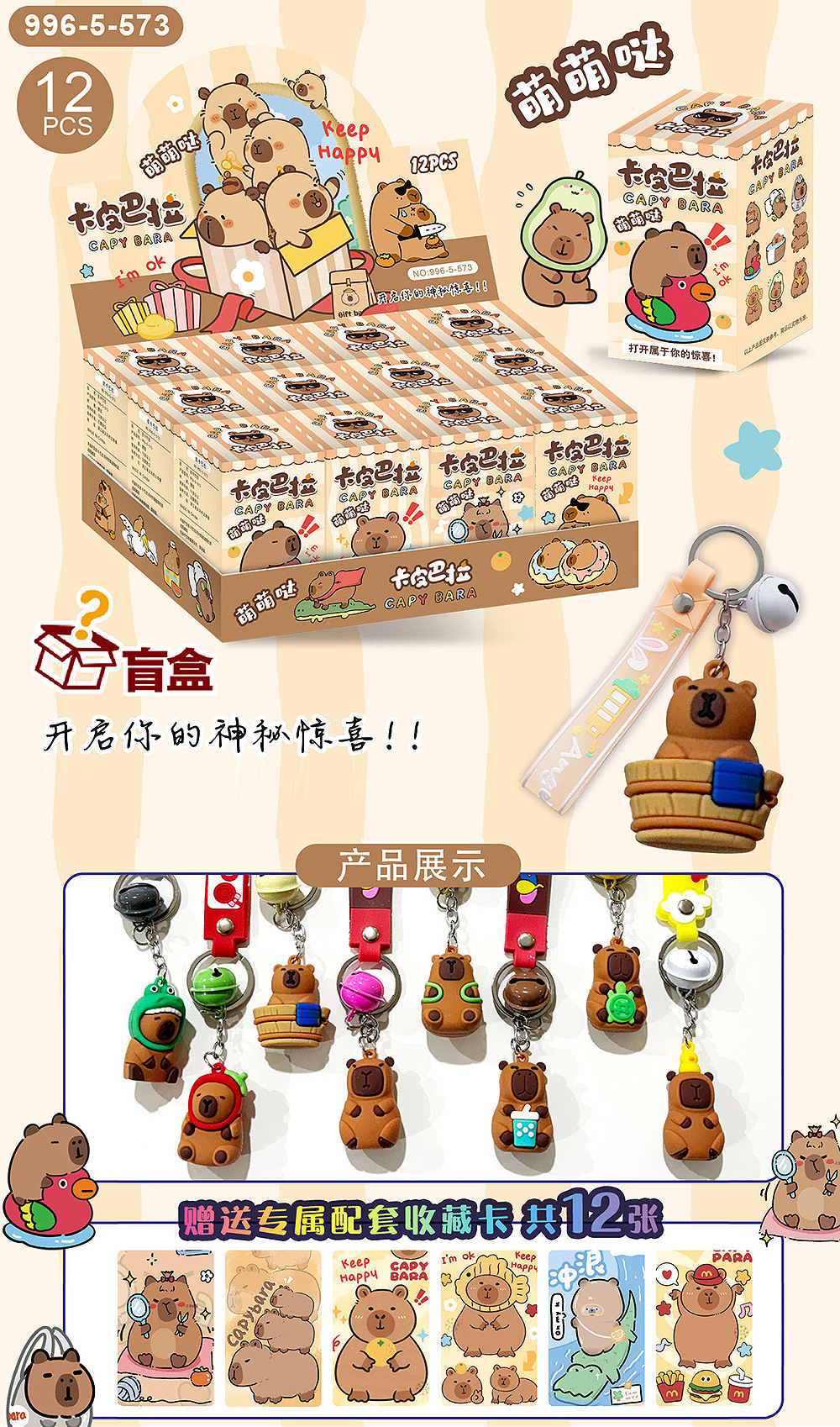 12 카피 발라 카피 바라 펜던트 블라인드 박스 핸드 헬드 인형 키 체인 어린이 장난감 선물 유치원 선물