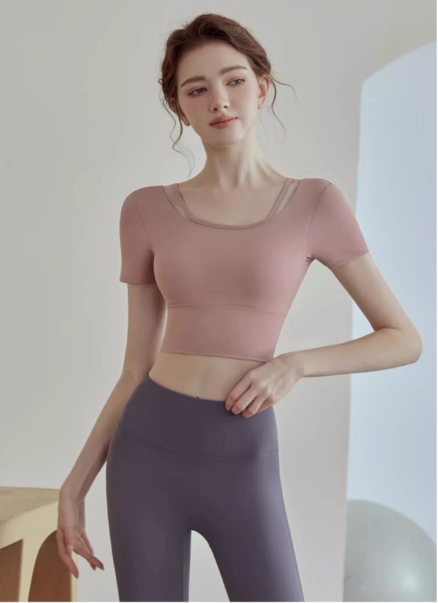 요가 의류 소녀의 봄과 여름 통기성 스포츠 반팔 탑 꽉 끼는 슬리밍 얇은 피트니스 의류 필라테스 훈련 의류스토어 가기