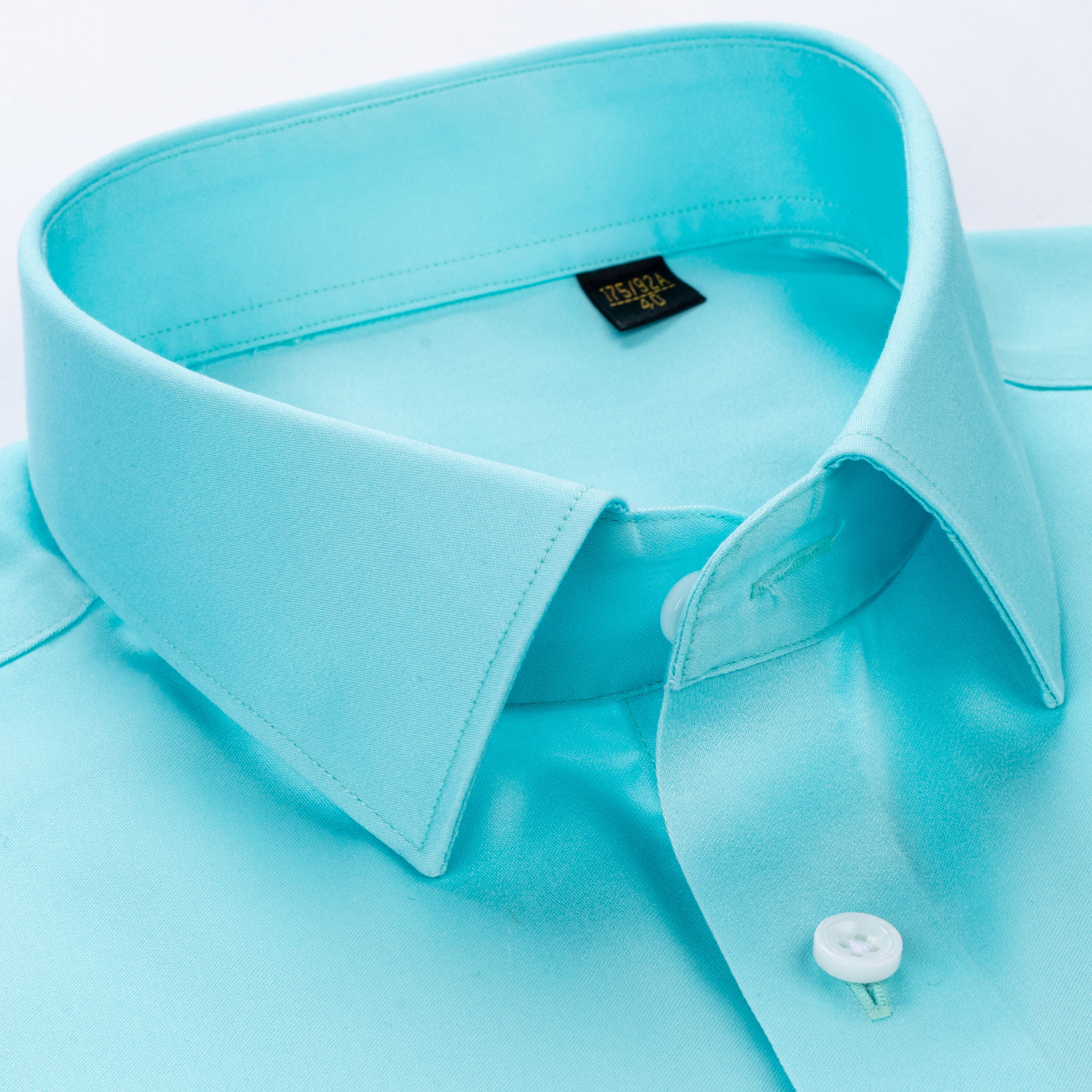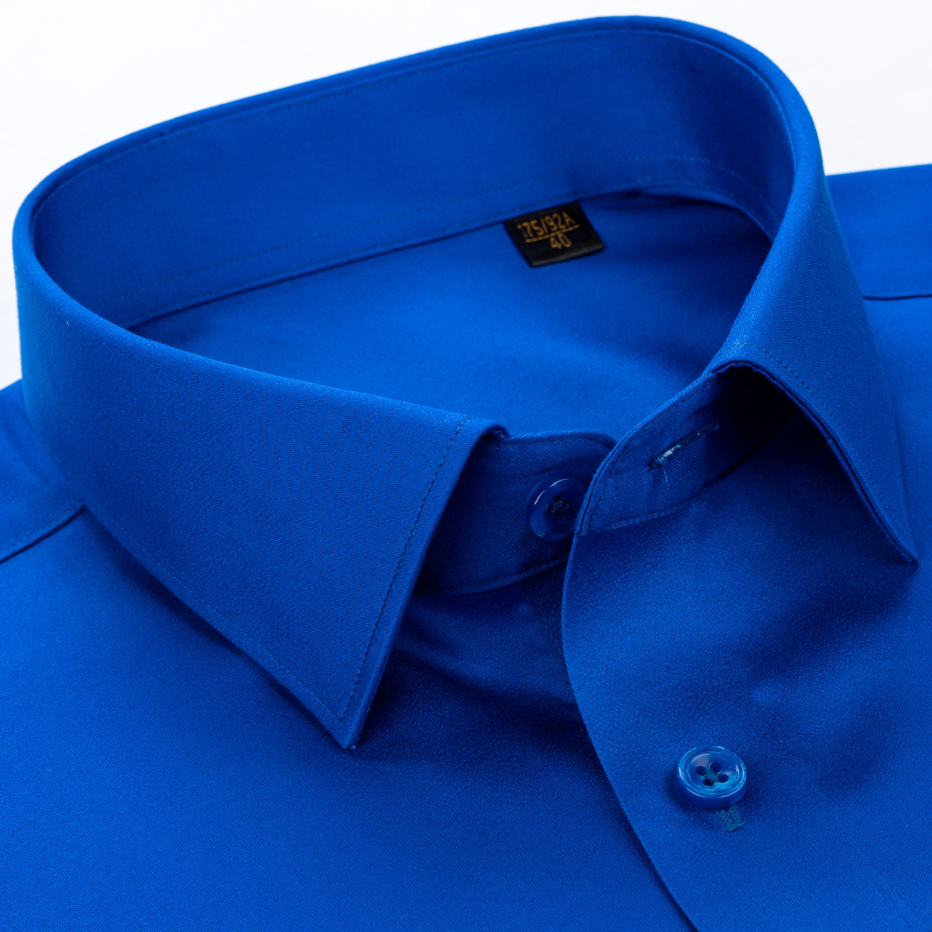 200 카운트 DP 순수 코튼 노 아이론 하이 엔드 새틴 화이트 셔츠 남성용 긴팔 비즈니스 정장 주름 방지 블루 셔츠 결혼식