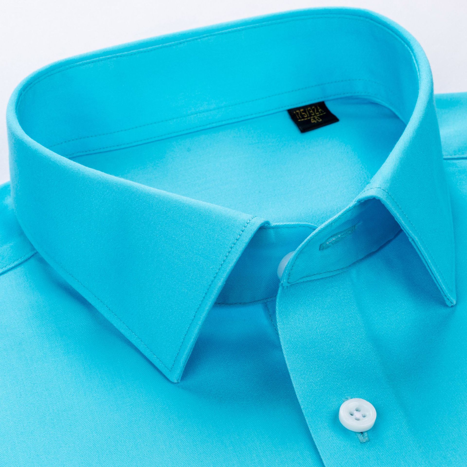 200 카운트 DP 순수 코튼 노 아이론 하이 엔드 새틴 화이트 셔츠 남성용 긴팔 비즈니스 정장 주름 방지 블루 셔츠 결혼식스토어 가기