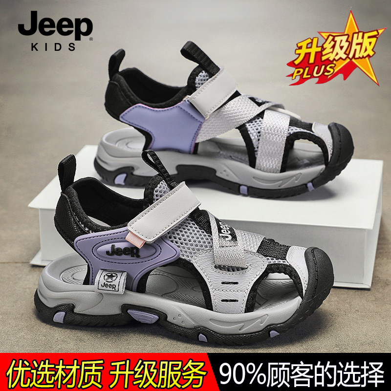 지프 어린이 신발 소년 샌들 2024 여름 새로운 해변 신발 통기성 미끄럼 방지 경량 편안한 부드러운 바닥 마모 방지 패션