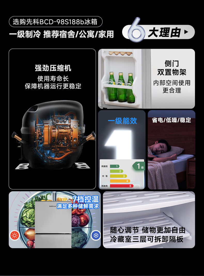 Xianke 냉장고 가정용 소형 기숙사 임대 호텔 냉동 냉장 2 도어 3 도어 냉장고 에너지 절약