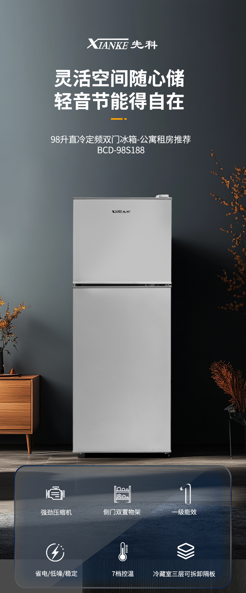 Xianke 냉장고 가정용 소형 기숙사 임대 호텔 냉동 냉장 2 도어 3 도어 냉장고 에너지 절약스토어 가기