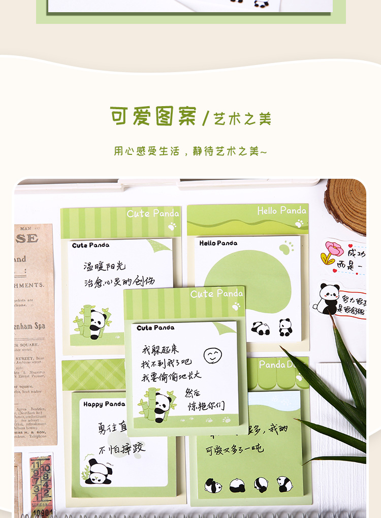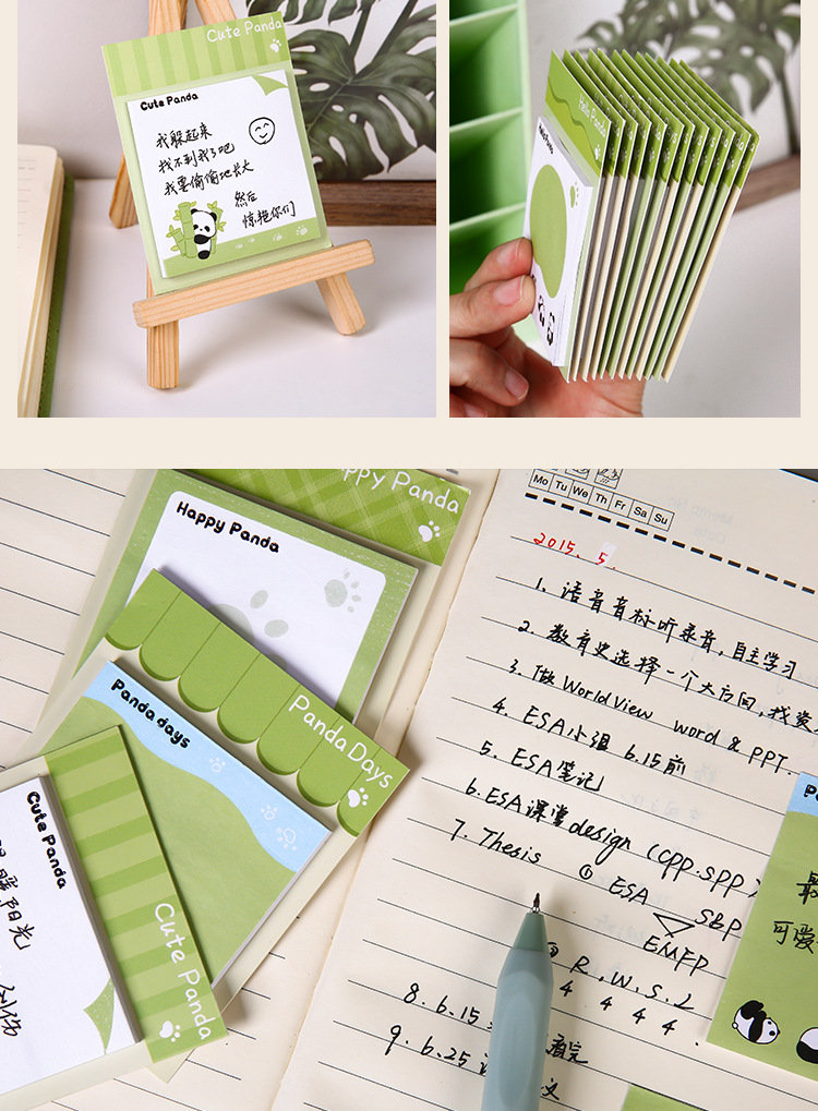 귀여운 팬더 포스트잇 노트 작은 신선한 녹색 만화 소녀의 심장 N 게시 종이 학생 메시지 각서스토어 가기