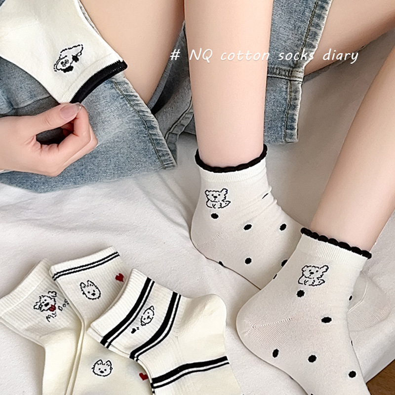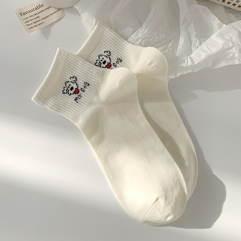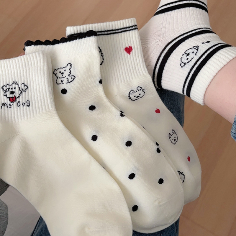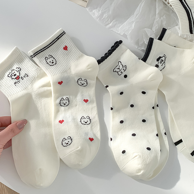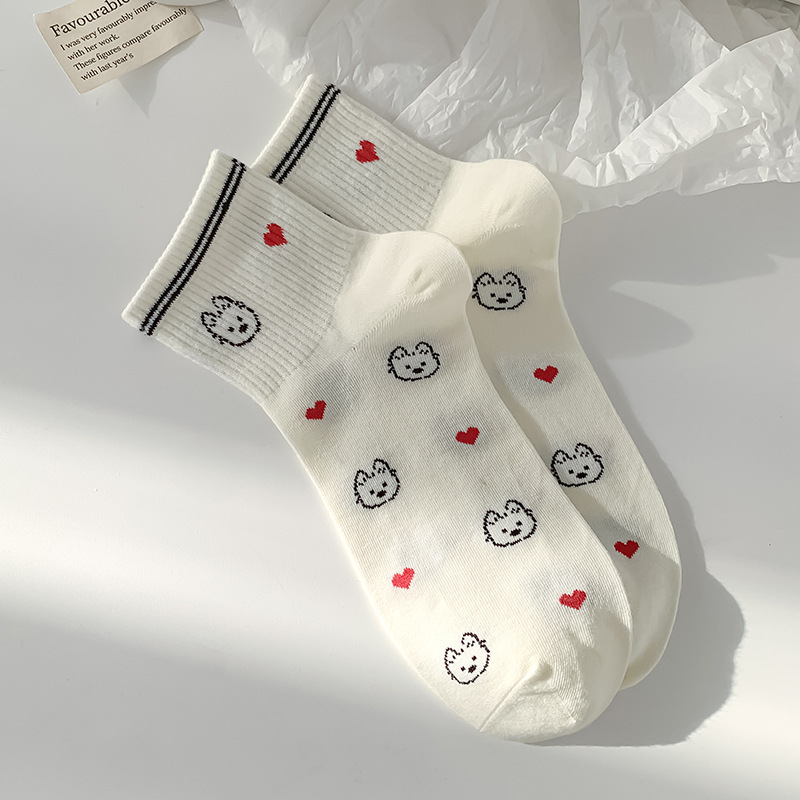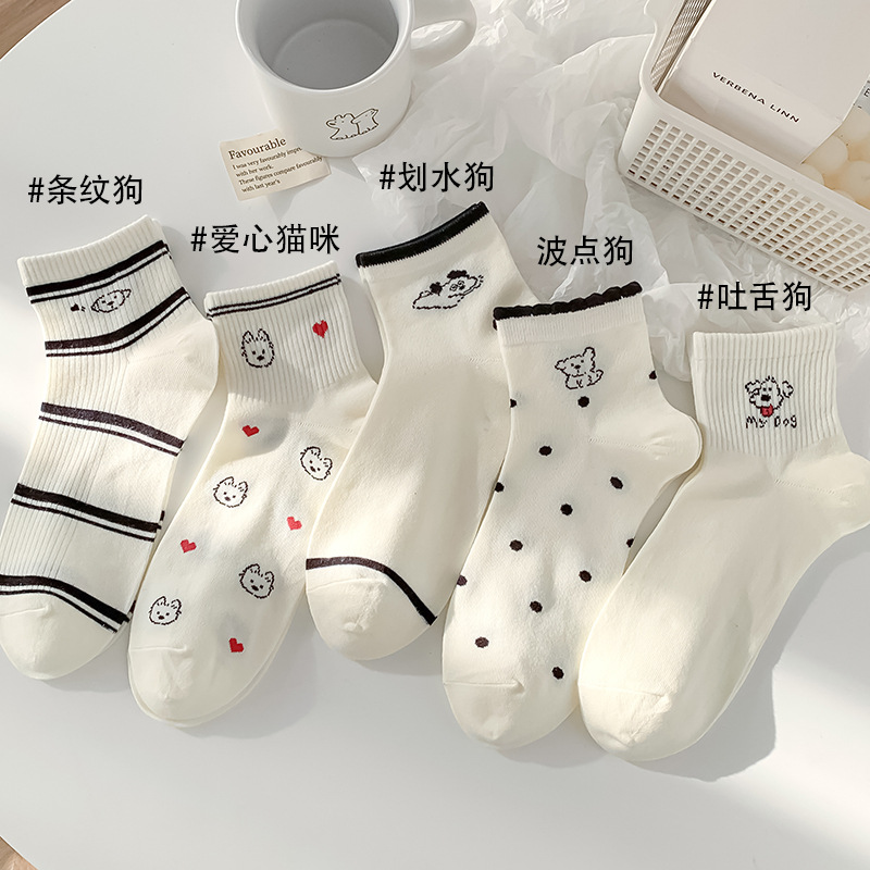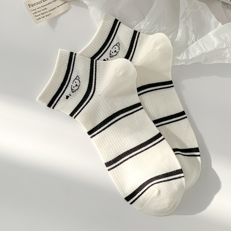 귀여운 줄무늬 강아지 양말 여성의 짧은 양말 면 양말 여름 얇은 일본 스포츠 여름 흰색 중간 양말스토어 가기