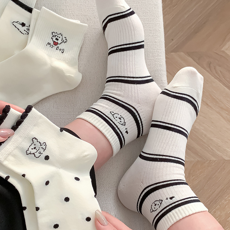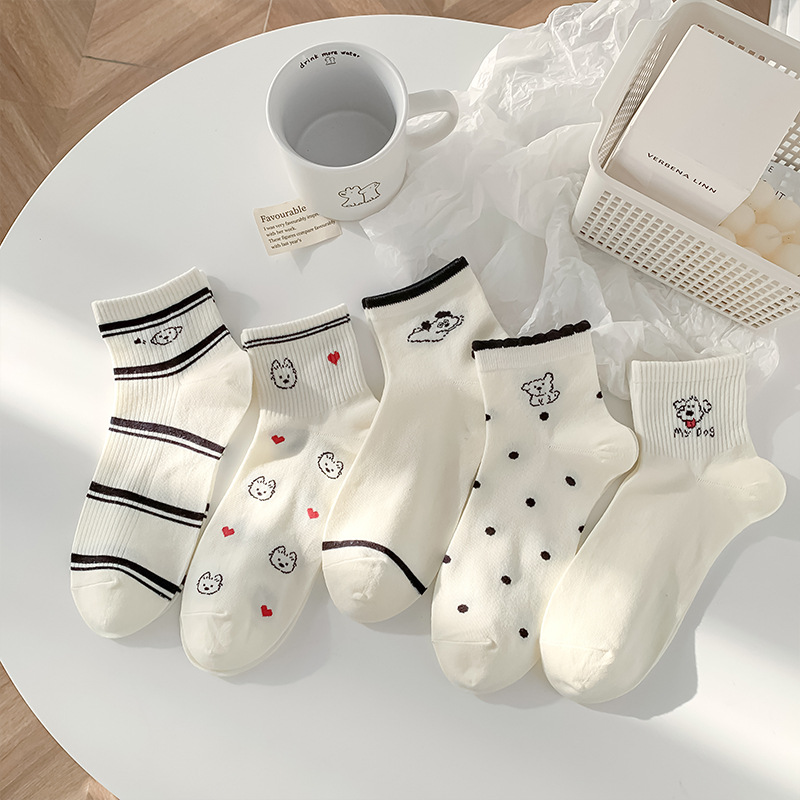 귀여운 줄무늬 강아지 양말 여성의 짧은 양말 면 양말 여름 얇은 일본 스포츠 여름 흰색 중간 양말