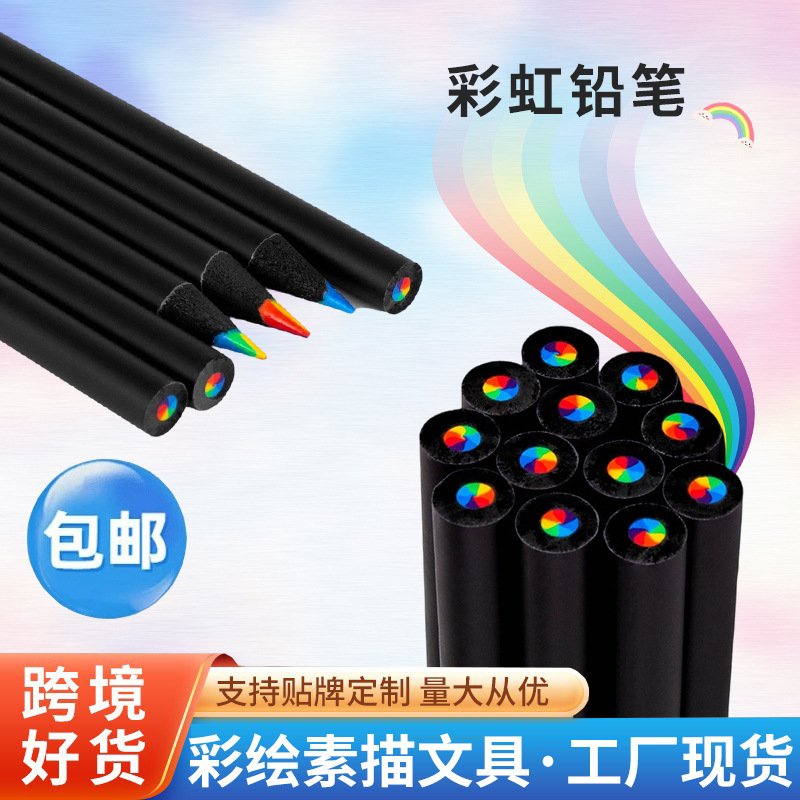 도매 크로스보더 수제 색연필 검은 나무 색연필 일곱 색 동심 무지개 색연필 어린이 수채화용