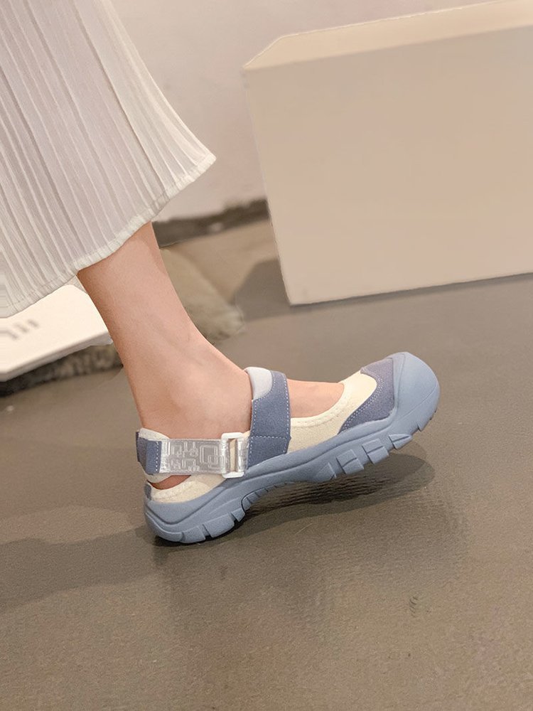 추악한 귀여운 큰 머리 캐주얼 신발 여성의 봄/여름 2024 새로운 복장 운동화 통기성 벨크로 플랫폼 샌들